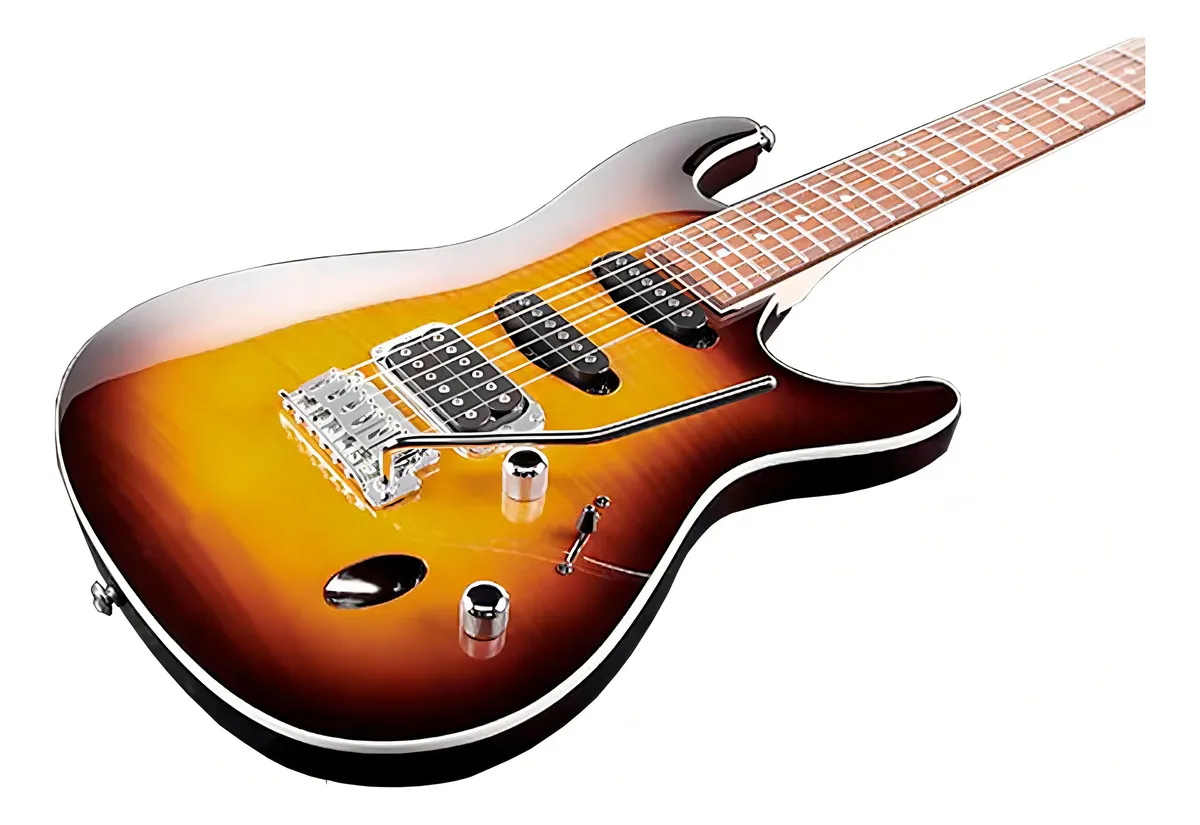 Hardware de Rendimiento: El mástil de arce con perfil SA es rápido y cómodo, ideal tanto para acordes como para solos veloces sobre el diapasón de Jatoba. Incluye el puente trémolo Ibanez T102, que ofrece una acción de palanca suave con una estabilidad de afinación superior y una entonación precisa. Es la guitarra perfecta para el músico de sesión o de banda versátil que necesita cubrir mucho terreno sonoro con estilo.