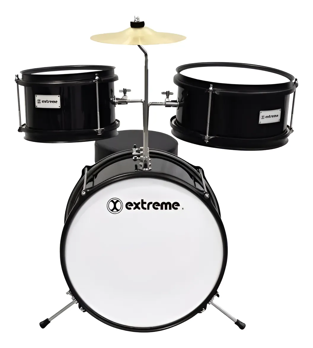Inicia a tu pequeño rockero con estilo con la Batería Infantil Extreme de 3 Piezas en color Negro. Este modelo destaca por su estética sobria y profesional, idéntica a la de las baterías que usan los músicos adultos en grandes conciertos. El acabado negro brillante es atemporal y combina con cualquier decoración, haciendo que el instrumento se vea increíble en la habitación del niño o en la sala de juegos.