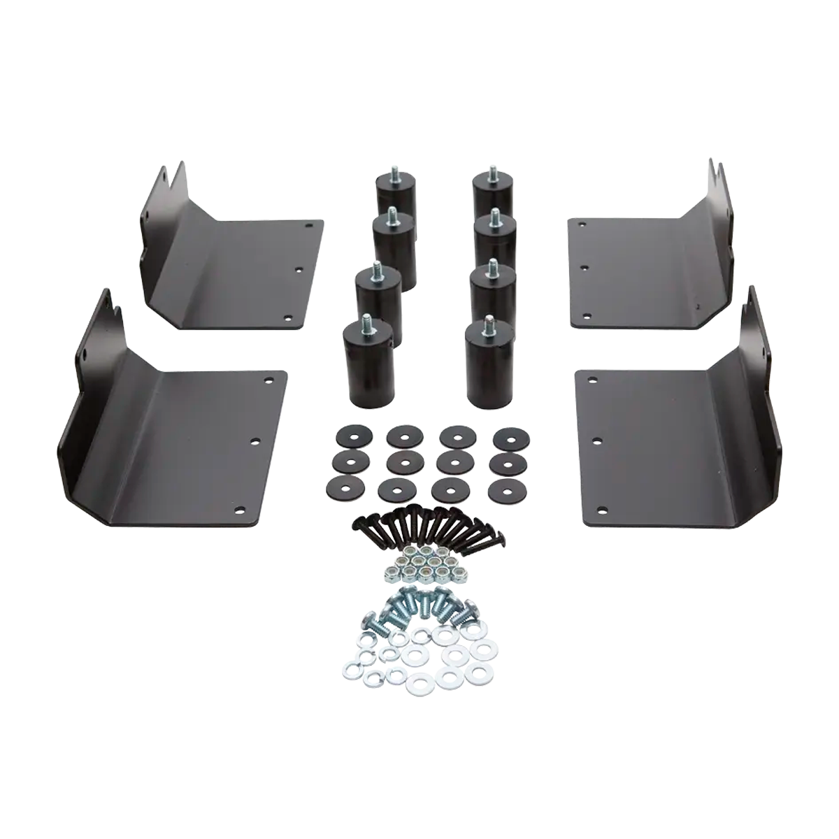 Este completo kit incluye distribuidores de carga para mayor estabilidad y amortiguadores adicionales para impactos y vibraciones cuando se requiere peso adicional.
