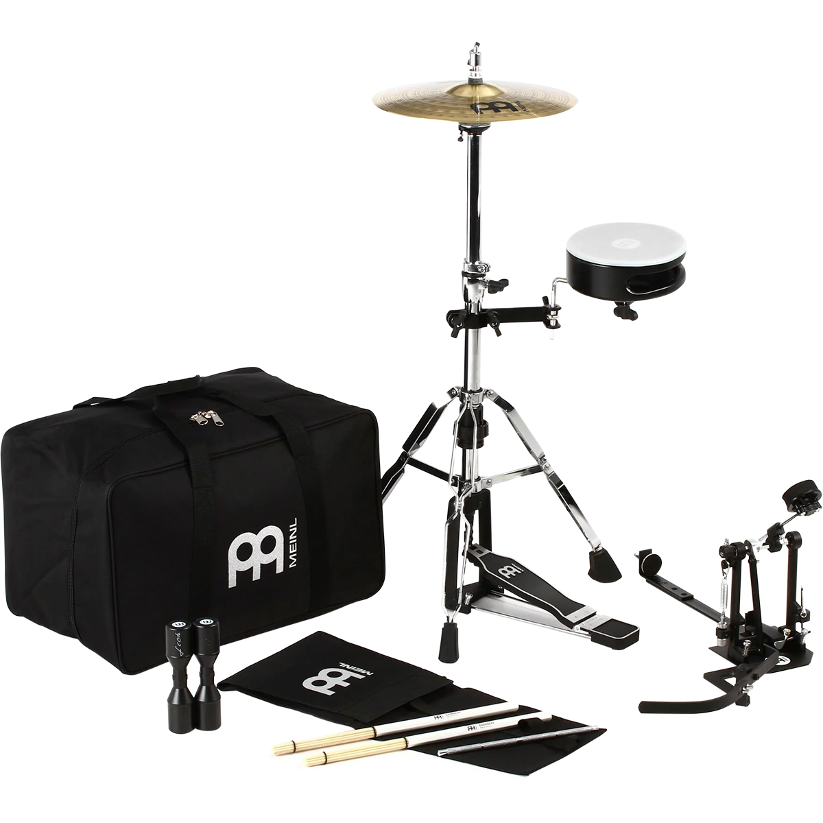 El kit de conversión MEINL Cajon Drum Set es una solución compacta y portátil para expandir tu cajón en un pequeño set de batería con una huella escénica discreta y un volumen reducido.