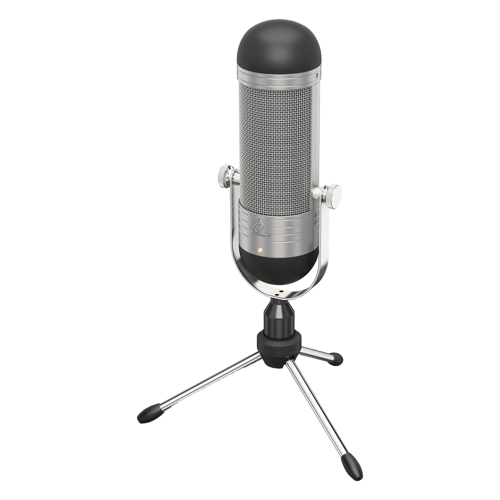Micrófono USB de cápsula vintage, icónico de la década de 1940, ideal para streamers, podcasters, gamers y aplicaciones de estudios, respuesta de frecuencia excepcional y resolución de sonido ultra alta, perfecto para voz e instrumentos acústicos, la característica cardioide proporciona el máximo aislamiento de otras fuentes de sonido, conecta ese increíble micrófono USB directamente a tu computadora y conviértela en un sistema de grabación sin necesidad de ningún otro hardware, driver ASIO de latencia ultra baja para optimización de audio de PC disponible en la página oficial de Behringer, soporte de escritorio personalizado para ajustar en cualquier ángulo con soporte de micrófono roscado, circuito integrado de reducción para una alta relación señal a ruido, construcción ultra resistente con cuerpo de metal fundido a presión, cable USB blindado de alta calidad incluido.