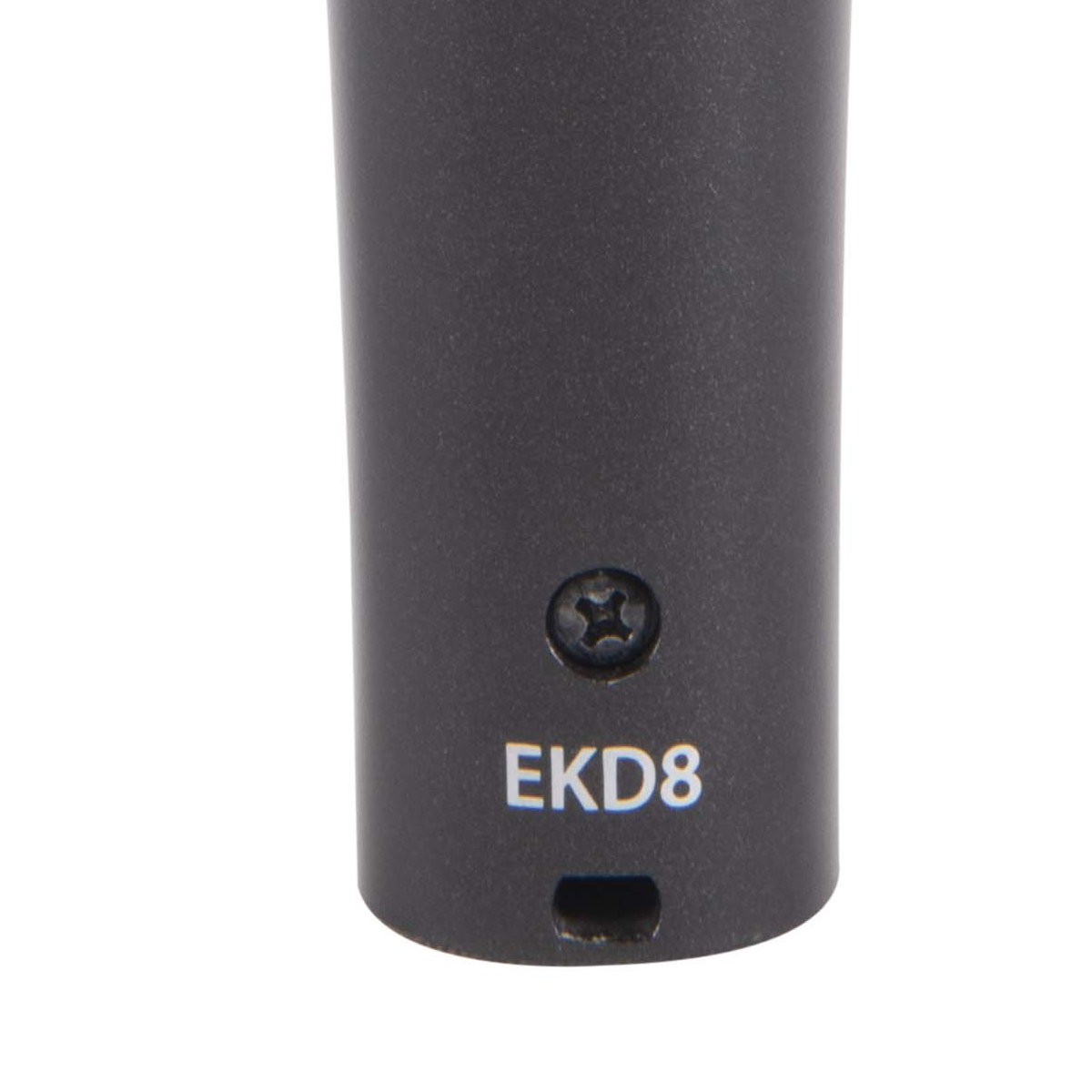Optimizado para todas las aplicaciones vocales, este micrófono controla específicamente efectos de proximidad a través de su reducción de baja frecuencia, lo que lo convierte en una excelente opción para todos los artistas como DJ, cantantes masculinos y femeninos y locutores. El EKD8 minimiza el ruido de manejo sin comprometer la calidad del sonido, gracias al robusto sistema de doble amortiguación de la cápsula.