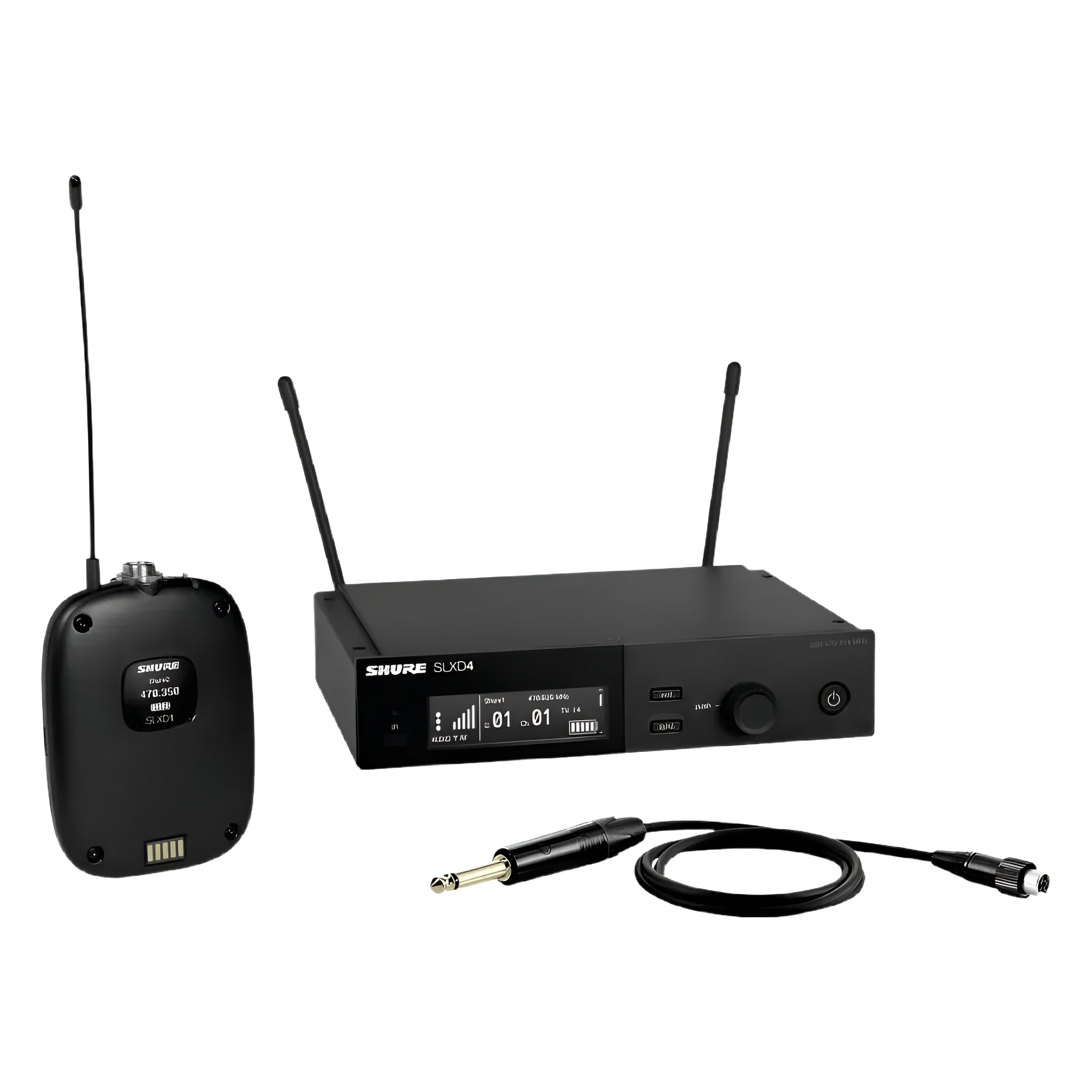 El Sistema Inalámbrico Shure SLXD14 con Cable WA305 es la solución definitiva para guitarristas y bajistas que exigen libertad de movimiento sin sacrificar ni un ápice de su tono. A diferencia de los sistemas analógicos tradicionales, la tecnología SLX-D Digital de Shure entrega una señal de audio de 24 bits / 48 kHz totalmente transparente, con un rango dinámico impresionante de 120 dB. Esto significa que la respuesta de tus pastillas (ya sean activas o pasivas) se transmite con una fidelidad absoluta, sin la compresión (“squash”) ni el ruido de fondo característico del inalámbrico antiguo.
