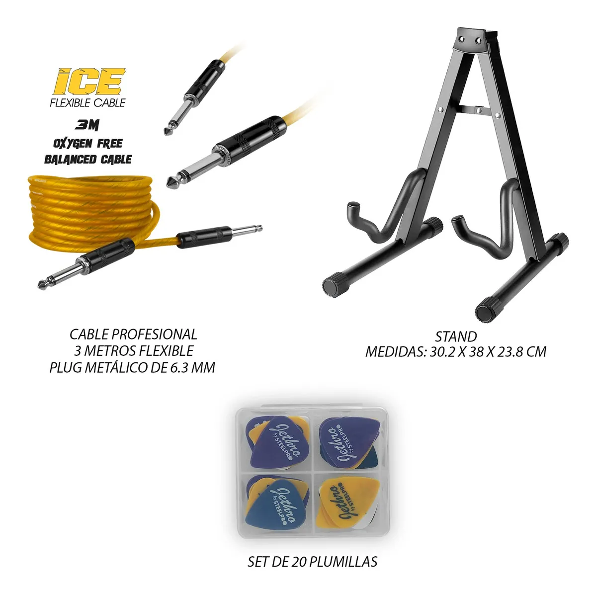 - Paquete Todo en Uno: Incluye amplificador de estudio, funda acolchada, cable y correa para una movilidad total.