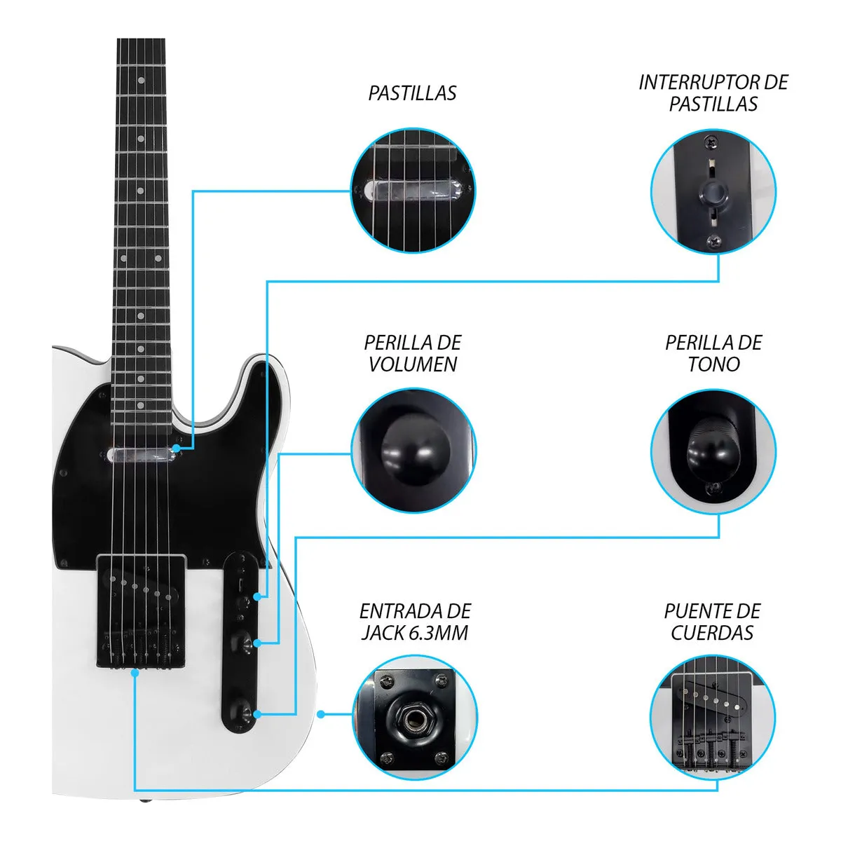 Paquete Guitarra Eléctrica Steelpro TC Series 048 Negra/Blanca 048-SK