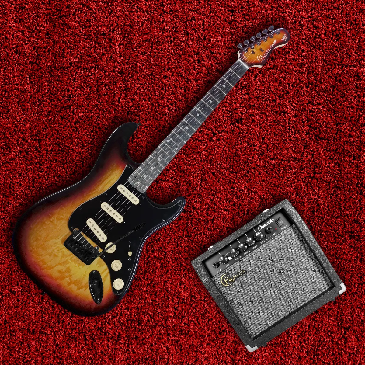 El Paquete de Guitarra Premiata SC 009PK es la solución ideal para principiantes, ofreciendo una guitarra de diseño clásico Stratocaster. El cuerpo sólido y el mástil de Arce (o similar) proporcionan un buen tono y una sensación de ejecución cómoda. Es una plataforma de aprendizaje fiable con un estilo que atraerá a muchos jóvenes músicos.