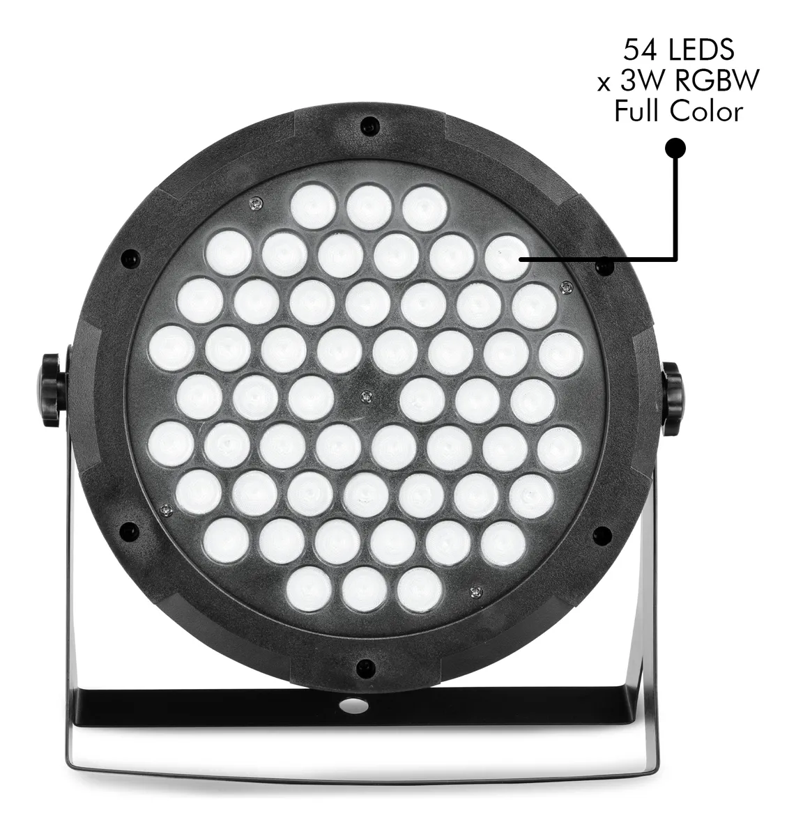 - LEDs de Alta Eficiencia: 54 unidades de 3 vatios cada una que proporcionan una salida de luz constante y potente con un bajo consumo energético.