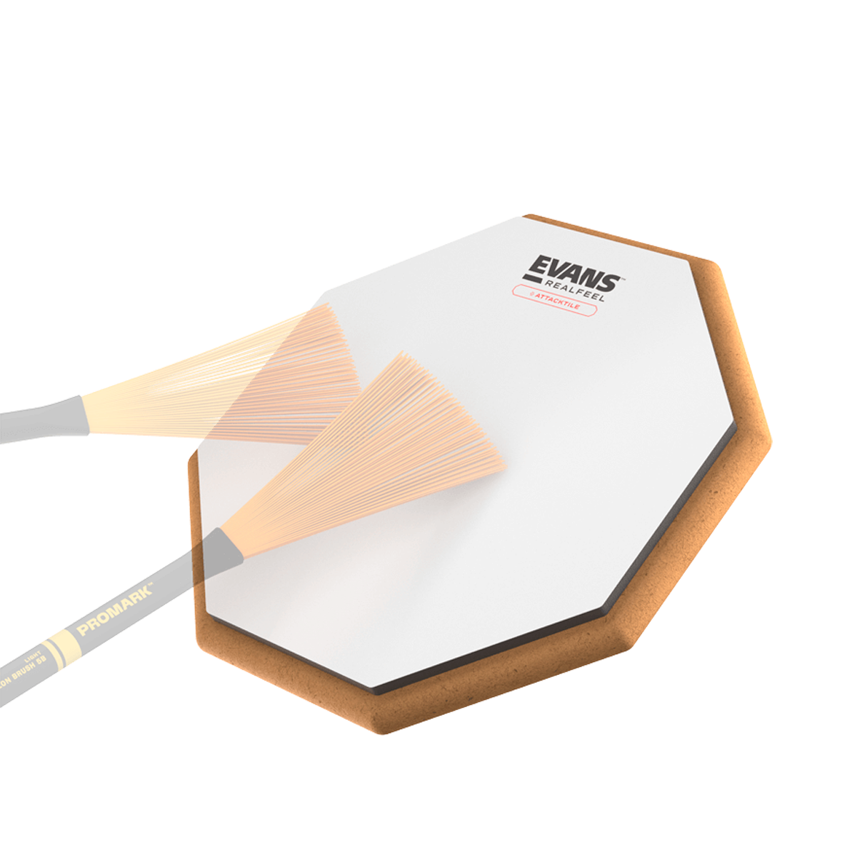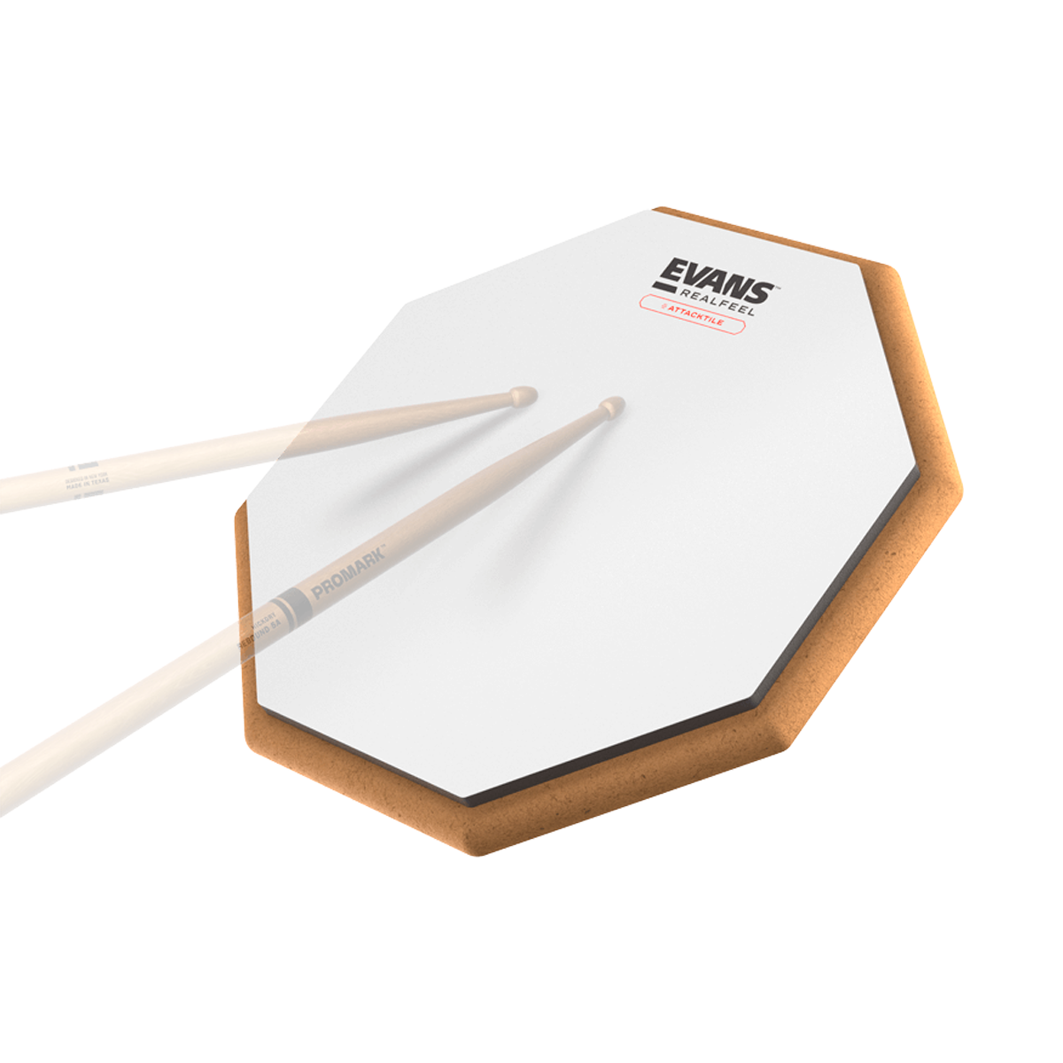 El nuevo pad practicador RealFeel Attacktile de EVANS cuenta con un recubrimiento UV para un mayor ataque, volumen y retroalimentación sonora, ofreciendo la experiencia de práctica más realista del mercado. Portátil y silencioso, se acopla perfectamente al soporte Apprentice para que puedas practicar a tu manera, donde quieras. (Soporte no incluido).