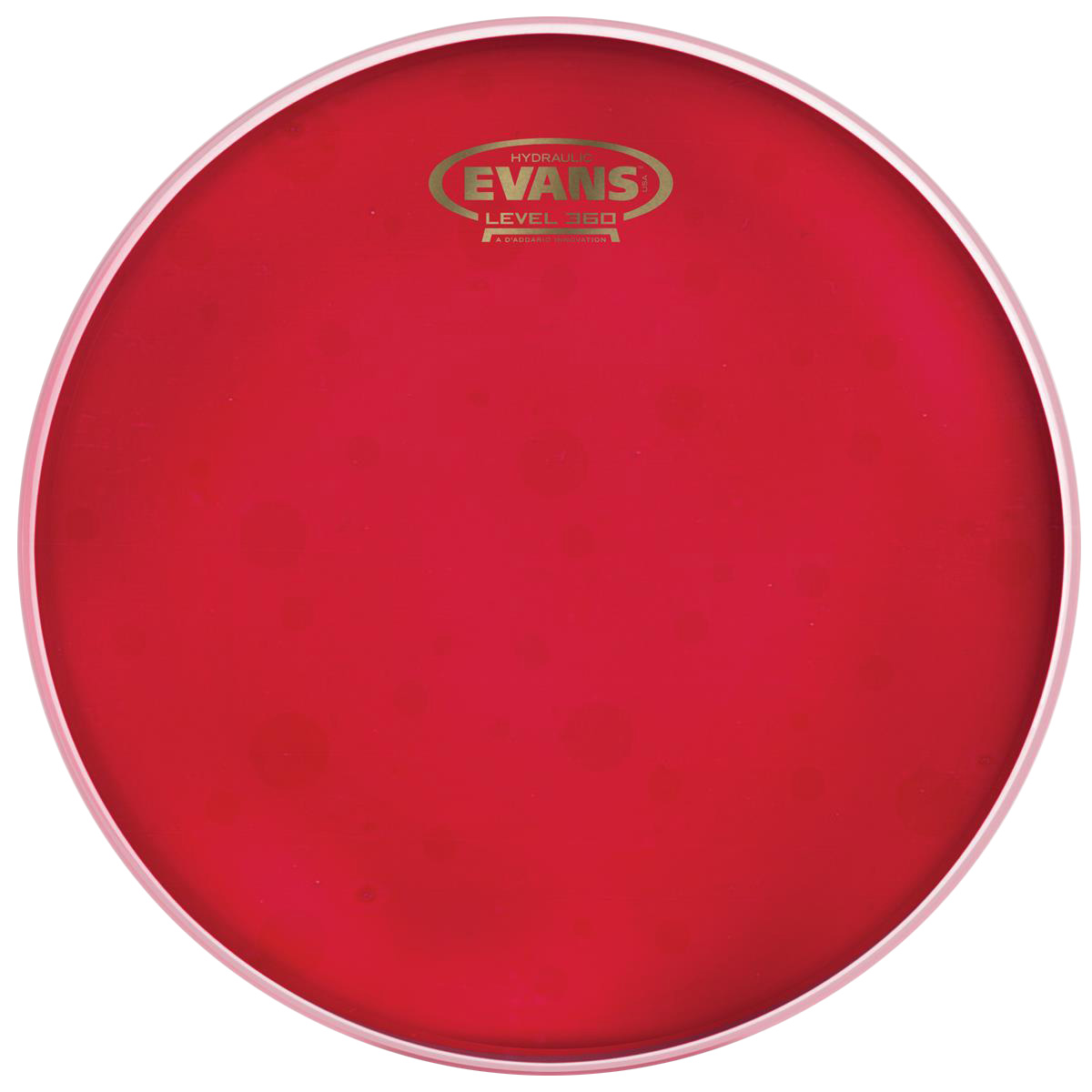 Parche hidráulico de golpe para tom de 13″ pulgadas, serie Hydraulic Red, fabricado con 2 capas de película de 7 milésimas de pulgada con aceite entre ellas para eliminar el sustain, gran resistencia y sonido, terminado en color rojo transparente, hecho en USA.