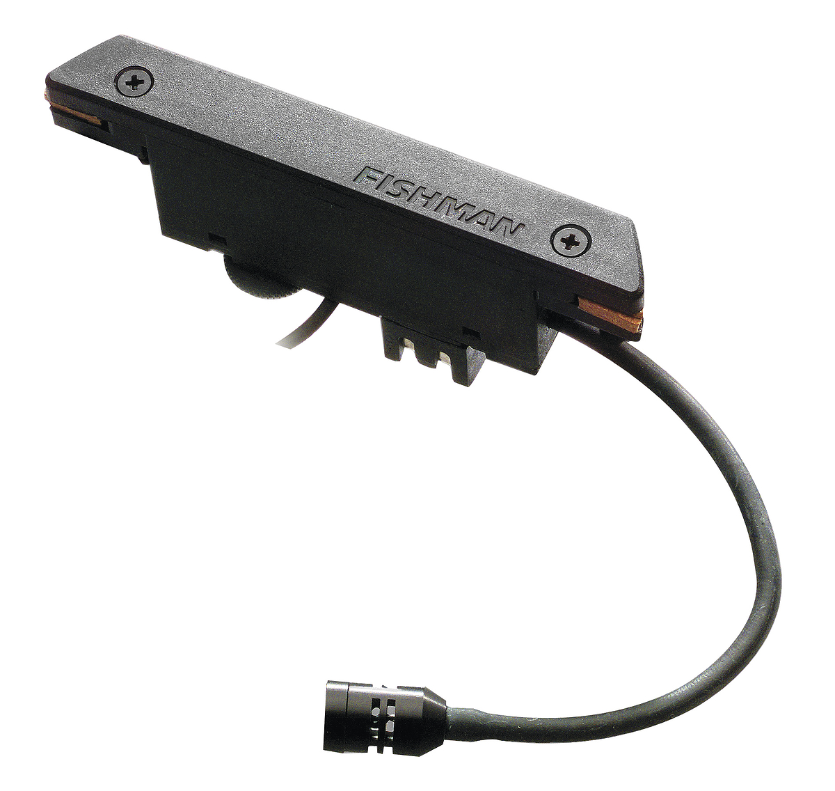 Pastilla activa Fishman para guitarra acústica con cuerdas de acero, bajo sextosy bajo quintos, doble captación, magnética y mediante micrófono, perilla de mezcla de ambas fuentes, tipo humbucker, para montarse en la boca de la guitarra, imán de neodimio.