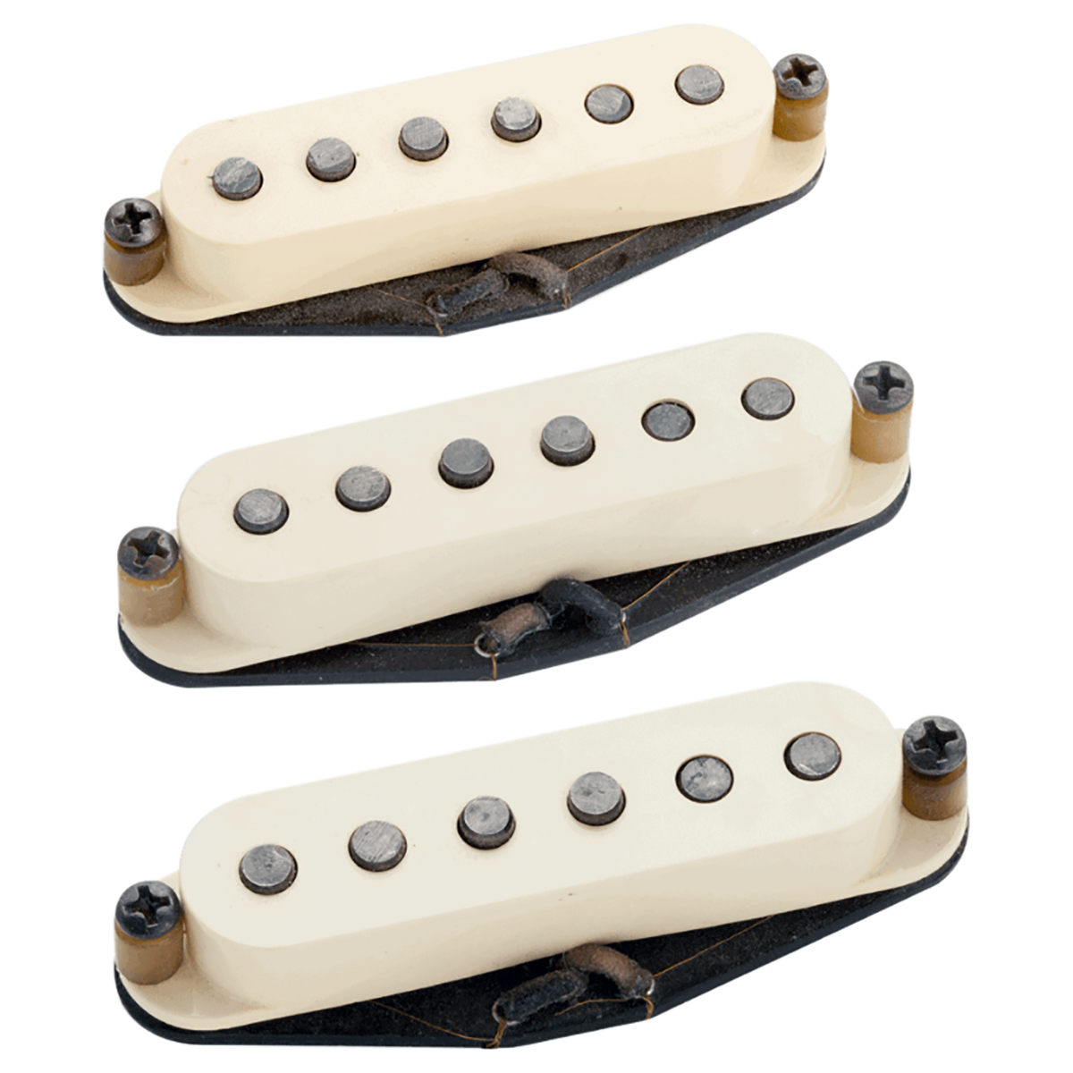 Set de pastillas humbucker pasivas para guitarra eléctrica de 6 cuerdas, modelo Antiquity Strat Texas Hot, posición: puente, centro y brazo, cableado: cloth push-back, imán: alnico 2, brinda el auténtico timbre, brillo y sensación de una sola bobina que solo las pastillas vintage Stratocaster pueden ofrecer.