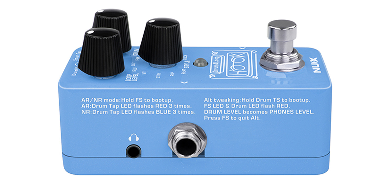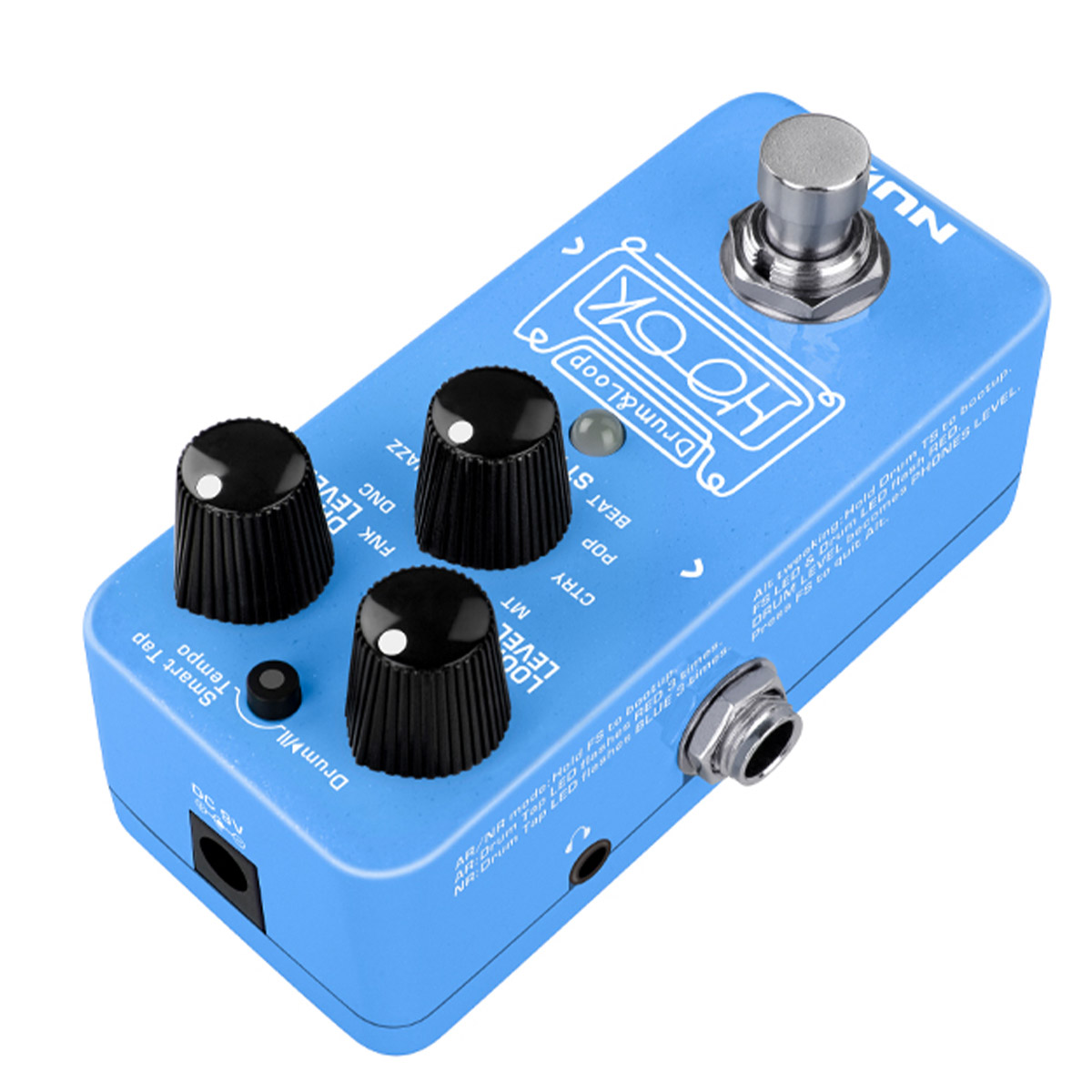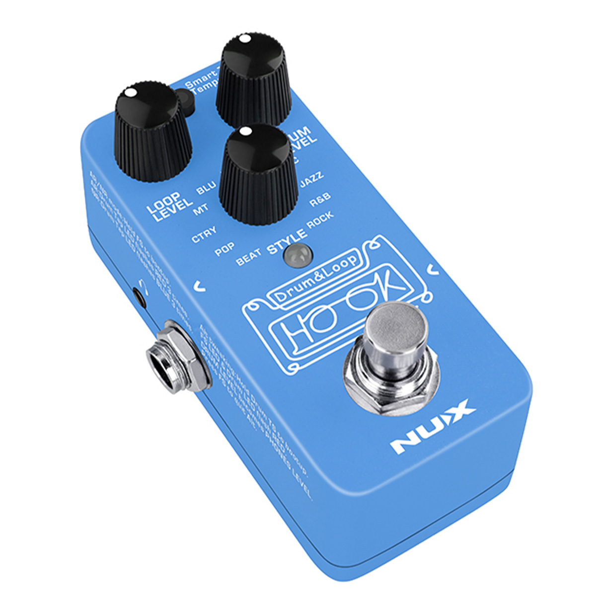 El HOOK Drum & Loop (NDL-3) es un pedal mini looper con detección automática de tempo. Bucle de frase de 24 bits con ritmo de detección automática de tempo en una mini caja. 11 estilos de ritmo con Smart Tap Tempo. Grabación de hasta 6 minutos, sobregrabaciones ilimitadas. Los volúmenes de batería y bucle se pueden ajustar por separado.Reproducción independiente de bucles y tambores. True-bypass y dry-through analógico. Auricular de 1/8” para práctica silenciosa y bajo consumo de energía. (menos de 100mA) cuenta con puerto USB-C para actualización de firmware e importación/exportación de archivos.