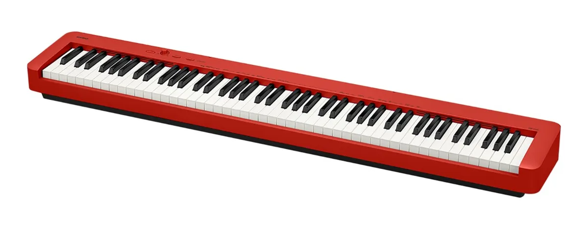 El Casio CDP-S160RD ofrece una experiencia de piano auténtica en un formato moderno y colorido. El teclado de 88 teclas de acción de martillo simula la respuesta de un piano acústico, siendo fundamental para el desarrollo de una técnica de piano adecuada. Su diseño es minimalista y muy portátil.