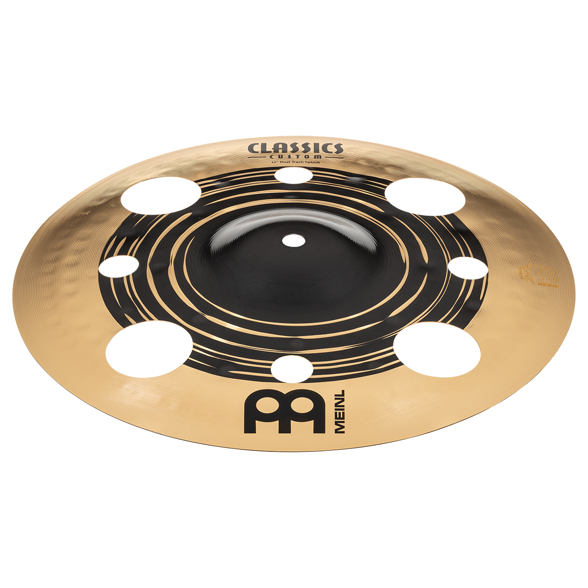 Platillo dual trash splash, diámetro de 12″ pulgadas, mezcla de sonido cálido y respuesta explosiva, martillado computarizado de alta tecnología de punto de presión, fabricado en Alemania con energía 100% renovable, peso: mediano, carácter: complejo, musical rico y con cuerpo, timbre medio oscuro, volumen de medio a alto, torneado: hoja estrecha, hoja ancha, sustain medio, fabricado con aleación de bronca B12, terminado oscuro/brillante.