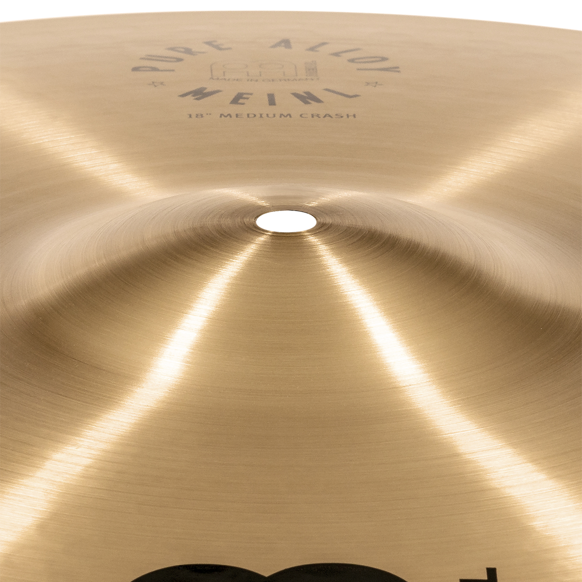 Medium Crash Pure Alloy de 18” pulgadas, timbre oscuro, terminado tradicional, fabricado con la nueva aleación especial Pure Alloy de Meinl, torneado pinpoint.