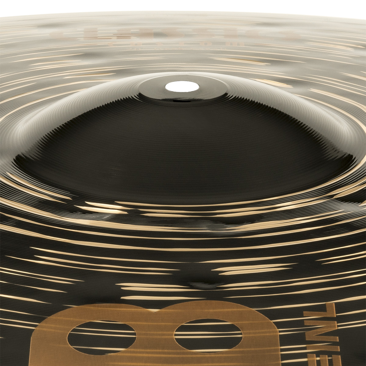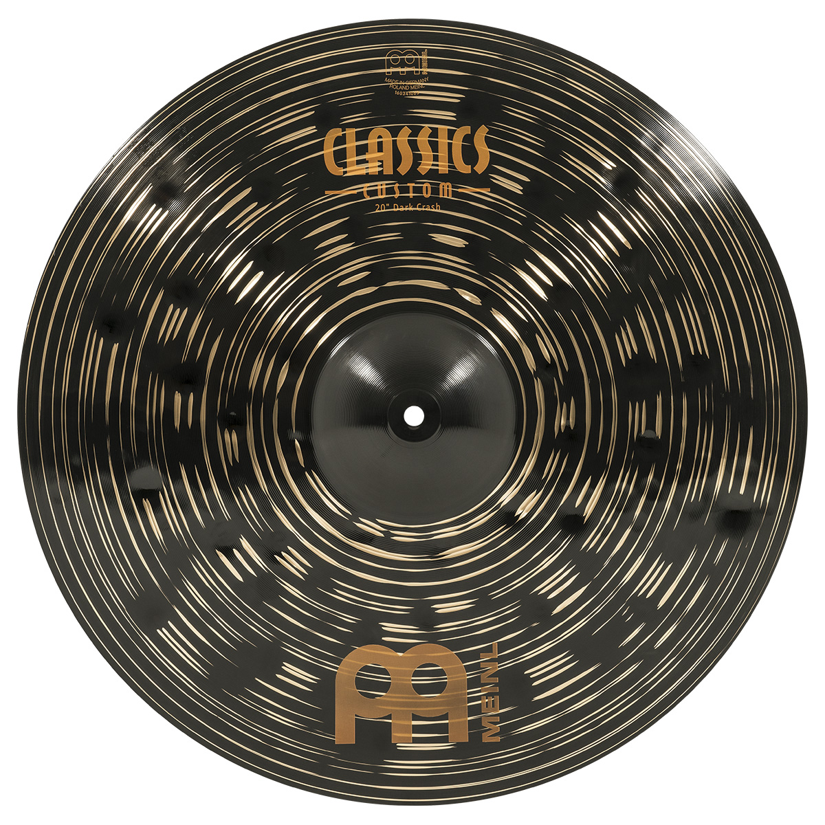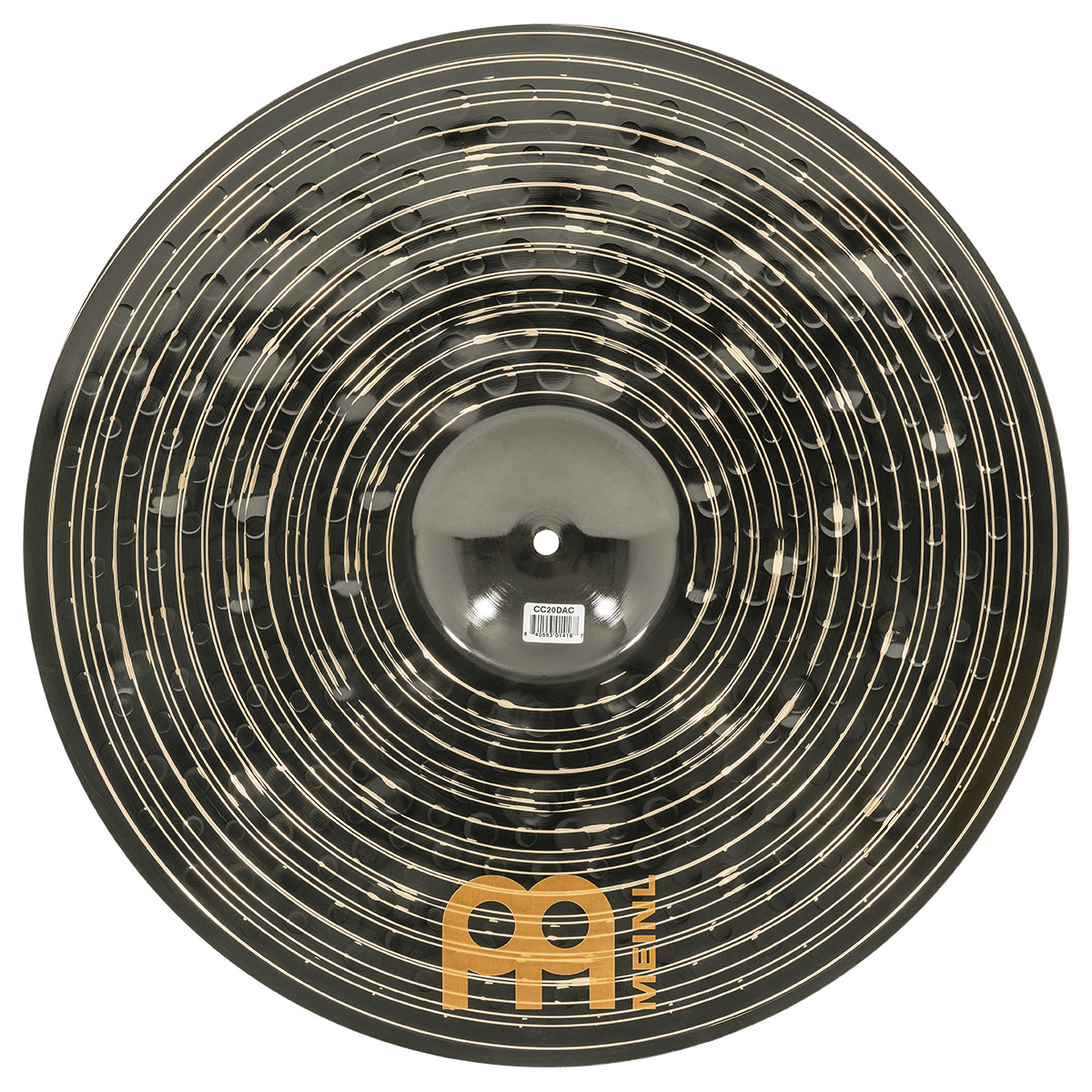 Platillo crash Meinl de 20″ pulgadas, serie Classics Custom, timbre brillante, carácter rico-musical, tono agudo-medio, volumen medio, sustain medio, peso medio, terminado oscuro, aleación de bronce B12, torneado hoja ancha, ideal para estilos como Metal, Rock, Pop, Fusion, Studio.
