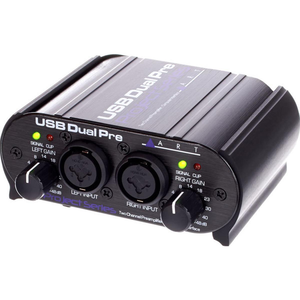 Dual Pre USB es un preamplificador dual portable de alta calidad y una interface para computadora, todo en una carcasa compacta y resistente. Está diseñado para trabajar en una amplia variedad de aplicaciones de grabación, desde campo remoto hasta tracking en estudio o computadora. Cada uno de los dos canales de entrada de bajo ruido tiene hasta 48 dB de ganancia limpia con señal presente e indicadores LED para clip. Las entradas pueden ser XLR balanceado o TRS de 1/4″. Cada salida TRS de 1/4″ es balanceada y de alta impedancia. Se alimenta a través del bus USB. Una batería interna de 9V o un adaptador opcional de 12V (o cualquier combinación de USB, batería y adaptador) pueden utilizarse dependiendo de la aplicación. Cuando funciona alimentado por la batería, tus expectativas de operación pueden ser de más de 50 horas de uso con el phantom apagado. La vida de la batería se reducirá a tan sólo 20 horas (dependiendo del micrófono) cuando la potencia phantom está encendida (tiempo suficiente para una sesión media). El adaptador incluido de potencia phantom de 48V de bajo ruido te permite alimentar hasta 2 micrófonos, así como el preamplificador cuando se ejecuta desde cualquier fuente de energía, incluyendo el bus USB. Para monitoreo, cuenta con una entrada de 1/8″ para audífono con controles de nivel y mezcla de monitor en la parte posterior que permiten un monitoreo local libre de latencia de las entradas durante la grabación, así como monitoreo de reproducción del bus USB. La mezcla de monitores también se dirige a las salidas balanceadas TRS de 1/4″ pulgadas como salidas de preamplificador o como alimentación de monitor a tus monitores activos. La interface USB es totalmente compatible con la especificación USB 1.1 y utiliza el modo de adaptación USB para reproducción y el modo USB asíncrono para grabación. Esto funcionará con los drivers del dispositivo USB integrados con Windows 98SE/ME/2000/XP/Vista y Apple OS9.1/OSX con soporte USB nativo. No se requiere un driver especial.