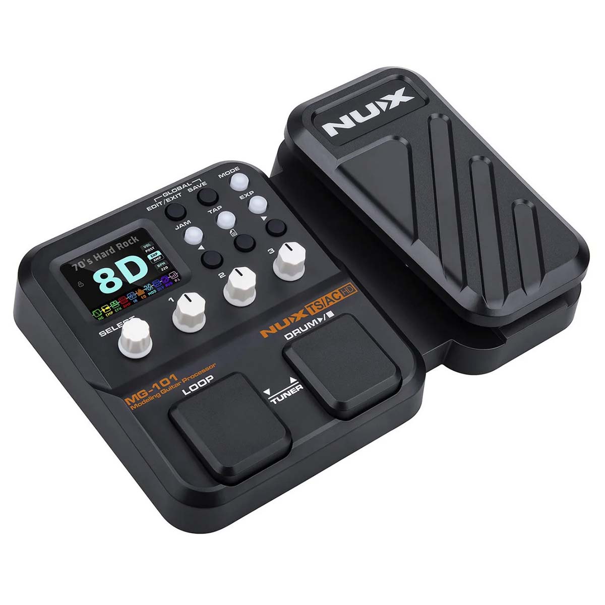 El NUX MG-101 es un pedal multiefectos y modelador de amplificadores ideal para guitarristas que buscan versatilidad y practicidad. Ofrece 25 modelos de amplificadores, 10 bloques de efectos esenciales, respuestas de impulso (IR) de alta resolución y herramientas como Looper de frases, caja de ritmos y metrónomo integrado.
