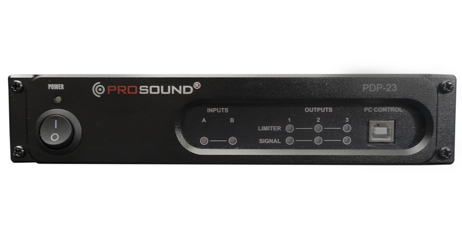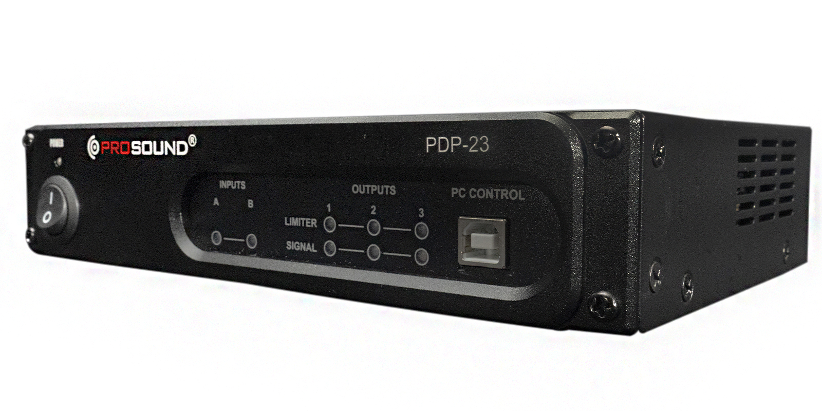 PDP-23 es un procesador de audio muy efectivo , 2 entradas y 3 salidas de audio analogico que soporta 96KHz de procesamiento y diferentes presets para sus sistemas de Audio. Cuenta con delimitador e indicador de salida, Puerto USB para importar paquetes de presets.