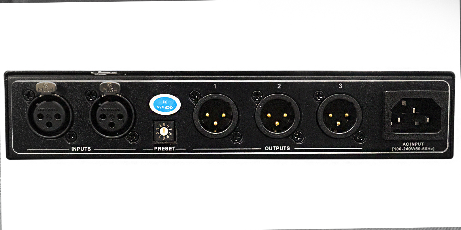 Concetores XLR (hembra de chasis) entrada balanceada. Puerto de señal de entrada de audio. 0 OUTPUTS: Conectores XLR (Macho de chasis) salida balanceada . Puerto de señal de Salida. En el POP-23 han creado paquetes de presets preestablecidos correspondientes para aplicacion basica de algunos sistemas de altavoces