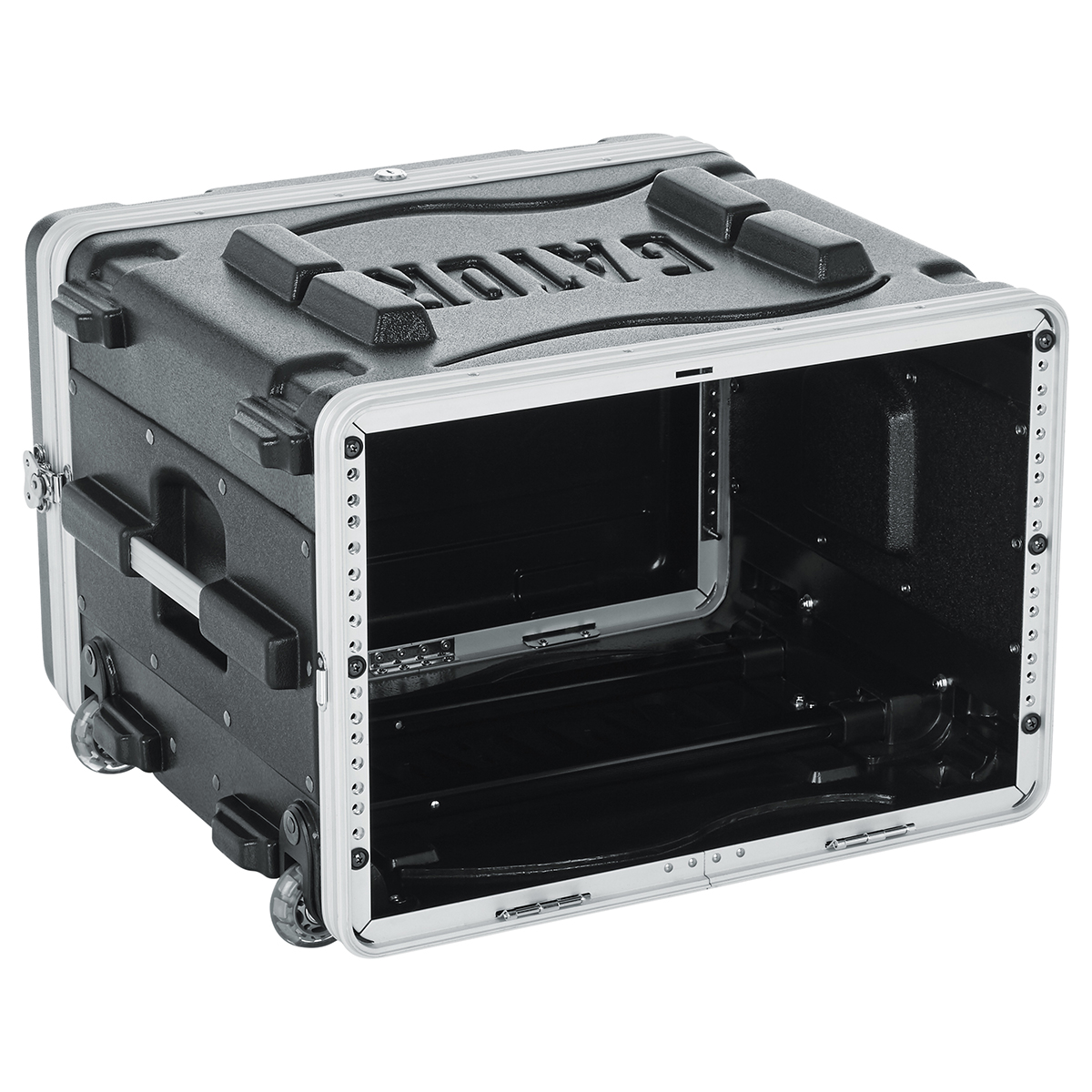 El estuche con ruedas GRR-6L de Gator es un estuche de polietileno liviano de grado militar de alta densidad con 6 RU de espacio y 18.75″ de profundidad para rack. El gabinete tiene rieles de rack delanteros y traseros y rieles de rack roscados de acero cincado de 7 mm reemplazables en campo. Tiene tapas delantera y trasera con seguro y pestillos giratorios de alta resistencia. El estuche se puede transportar utilizando las cómodas asas laterales empotradas, una asa resistente extraíble y ruedas empotradas estilo patines.