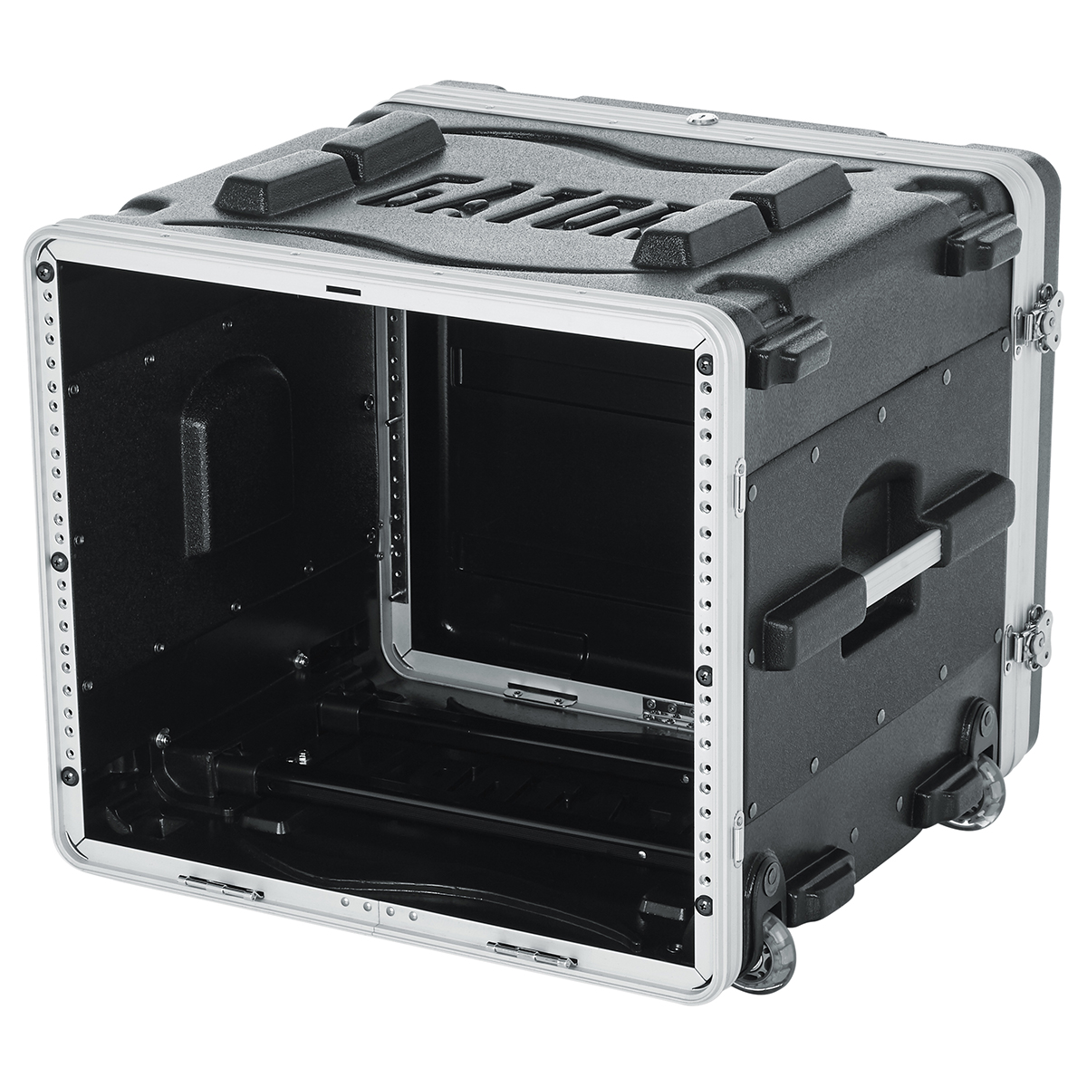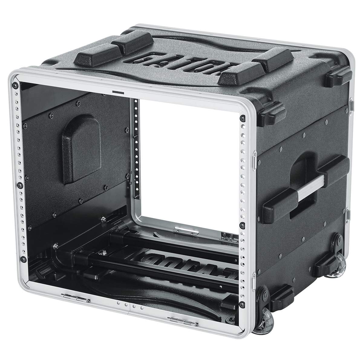 El estuche con ruedas GRR-8L de Gator es un estuche de polietileno liviano de grado militar de alta densidad con 8 RU de espacio y 18.75″ de profundidad para rack. El gabinete tiene rieles de rack delanteros y traseros y rieles de rack roscados de acero cincado de 7 mm reemplazables en campo. Tiene tapas delantera y trasera con seguro y pestillos giratorios de alta resistencia. El estuche se puede transportar utilizando las cómodas asas laterales empotradas, una asa resistente extraíble y ruedas empotradas estilo patines.