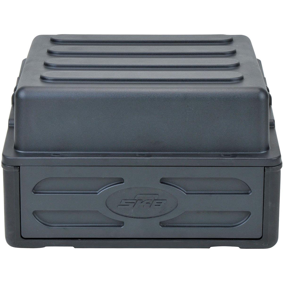 1SKB-R102 para audio y DJ es un rack con una apertura de 10 unidades inclinadas en la parte superior y 2 frontales que cuenta con rieles enroscados de acero, tapa dura y puertas, puertos de acceso laterales (para el enrutamiento del cable) y tiene espacio suficiente para montar el nuevo AV-8 con la tapa cerrada. La base de una pieza está roto moldeada con polietileno linear de media densidad (Linear Medium Density Polyethylene – LMDPE) mientras que la puerta trasera y la tapa frontal se moldean por inyección de caucho estireno modificado (RMS). La tapa posterior proporciona el máximo acceso al rack. Dos cerraduras TSA con patente de SKB bloquean los cerrojos para asegurar la tapa, mientras que la parte superior plana y rígida permite apilar en el transporte y almacenamiento.