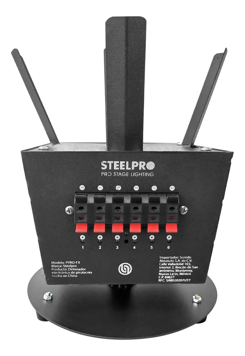 El Set de Detonadores Giratorios en Pack Steelpro Mod. PYRO-FX es el accesorio indispensable para elevar el nivel visual de cualquier espectáculo. Este sistema permite el montaje y disparo controlado de pirotecnia fría o efectos especiales con un movimiento rotativo suave y preciso. El modelo PYRO-FX está construido con materiales resistentes al calor y cuenta con un sistema de activación seguro para garantizar un desempeño impecable en cada uso. Es la herramienta técnica preferida por DJ’s y organizadores de eventos que buscan añadir un momento de impacto dinámico y profesional a sus presentaciones.