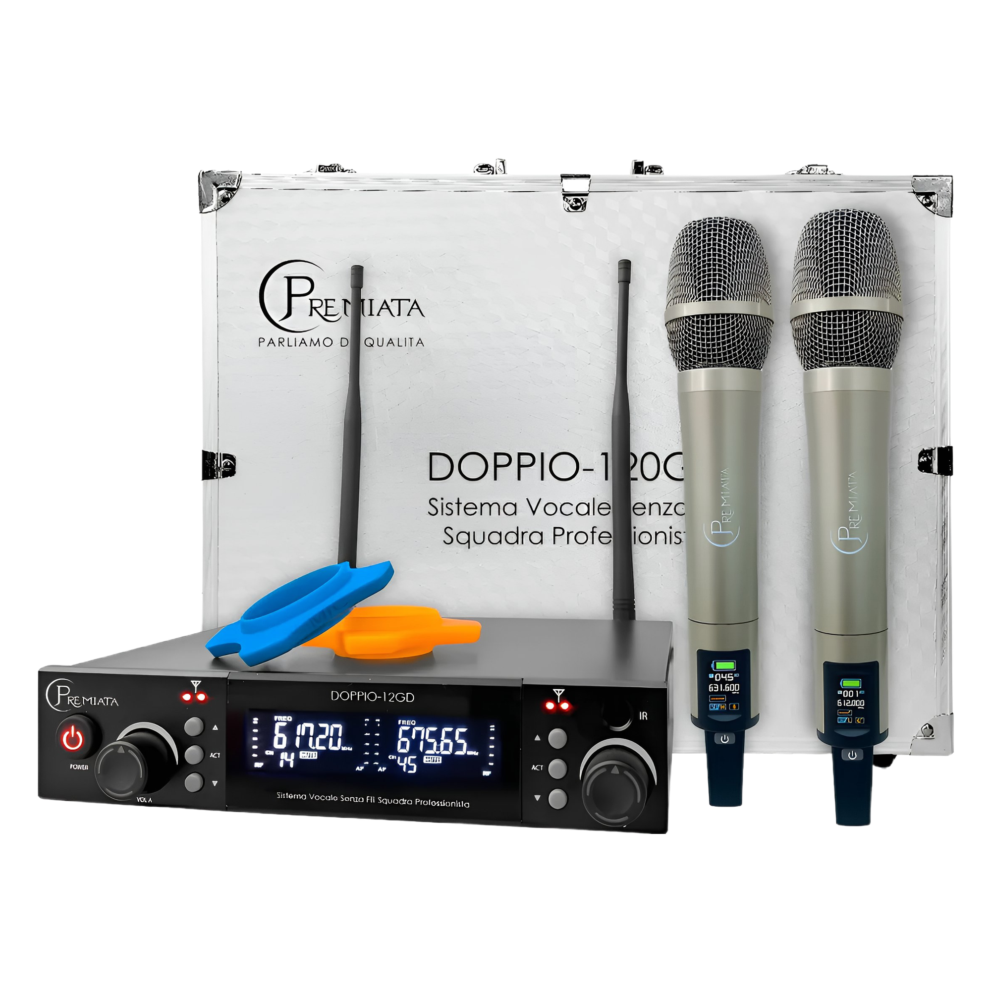El Premiata Doppio-120GD es un sistema de microfonía inalámbrica dual diseñado para presentaciones en vivo, ceremonias y eventos donde se requiere la participación de dos voces simultáneas con calidad de estudio. Gracias a su tecnología de transmisión estable, elimina interferencias y caídas de señal.