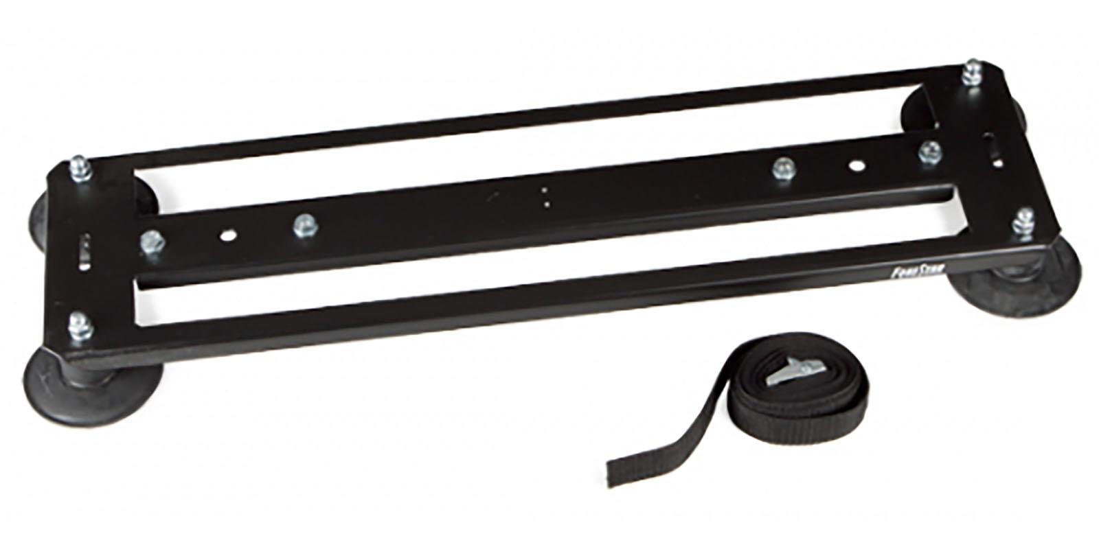 Soporte rectangular porta altavoces con ventosas y correa ajustable de seguridad, para instalar en techo de coche, furgoneta, etc, orificios para altavoces exponenciales modelos. FE-1210, FE-107, FE-149 o similares, se monta y desmonta congran facilidad y rapidez en cualquier tipo de vehículo, dimensiones: 66 x 5 x 18cm, peso: 2.1 kg.