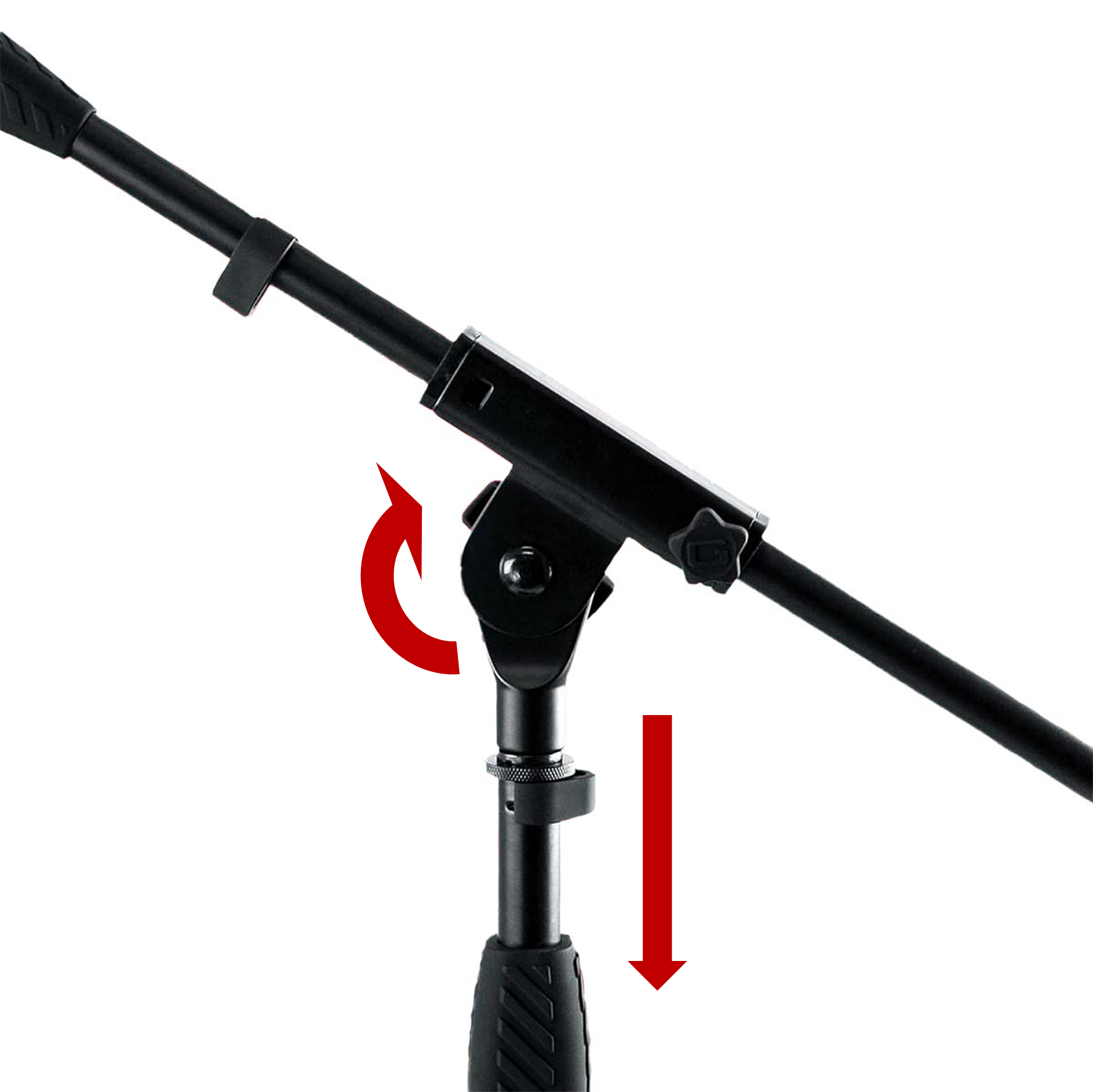 Fabricado con acero resistente, está pensado para durar y soportar micrófonos pesados sin comprometer el equilibrio. Incorpora un sistema de gestión de cables mediante clips ajustables que mantienen la configuración limpia y profesional. El embrague giratorio de agarre suave permite ajustes de altura cómodos y precisos con un simple cuarto de vuelta.