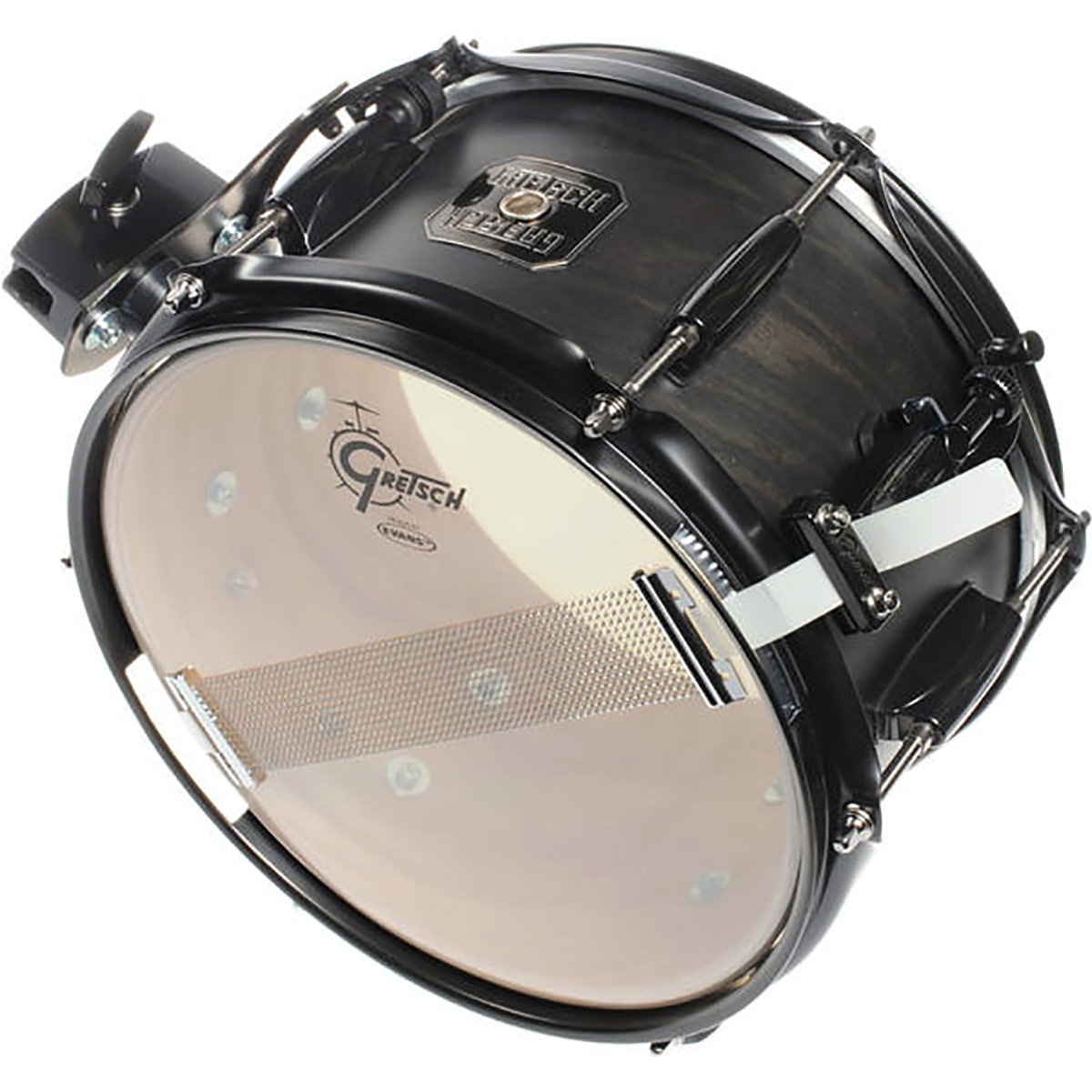 Tarola lateral de 10″ x 6″ pulgadas, fabricada con 10 capas de fresno, sonido nítido y agresivo, sustain controlado, bordes redondeados de 30°, aros triple flanged de 2.3 mm, entorchado de 20 hilos, incluye sistema de montaje GTS de Gretsch.