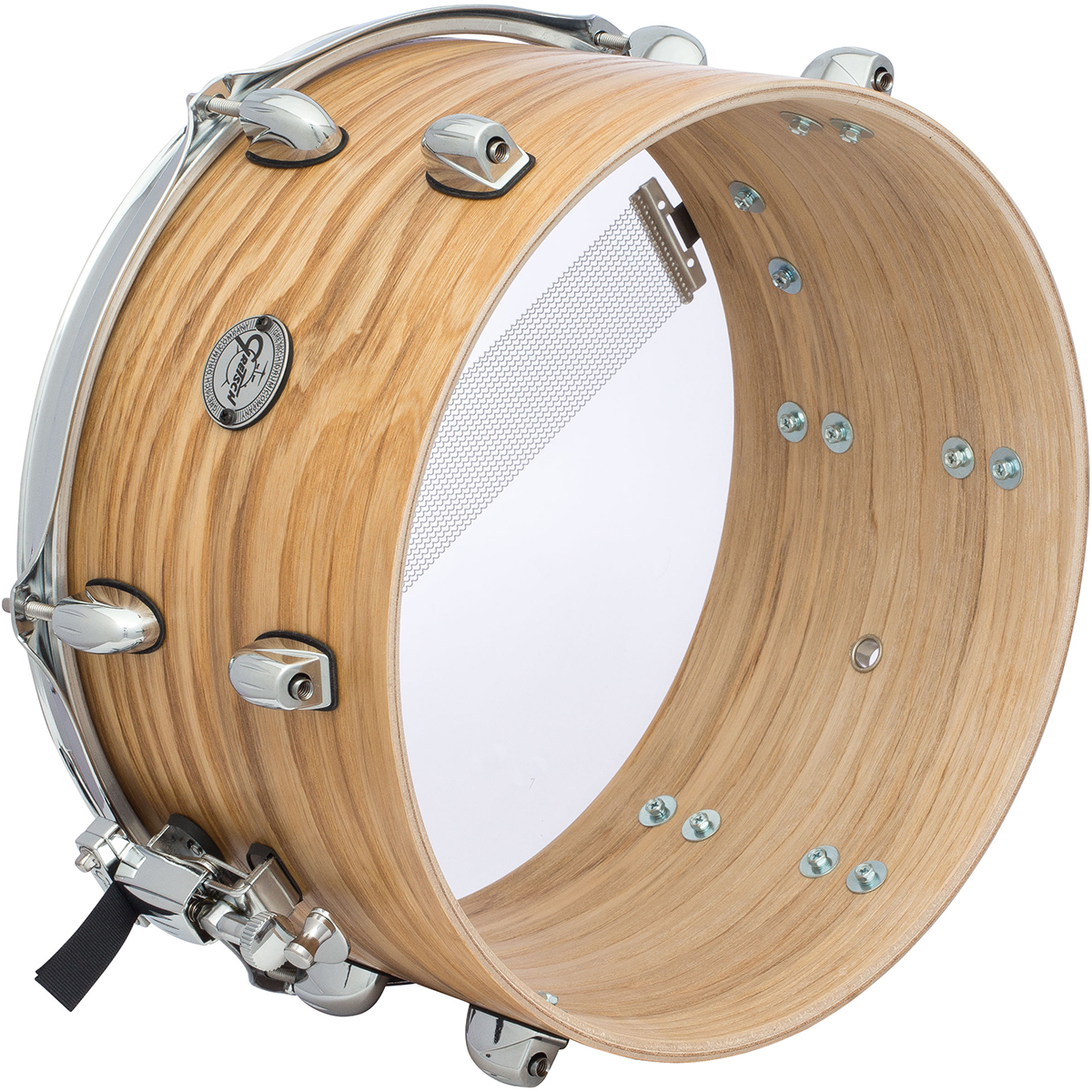 Tarola de 13″ x 7″ pulgadas, fabricada con 10 capas de fresno, sonido nítido y agresivo, sustain controlado, bordes redondeados de 30°, aros triple flanged de 2.3 mm, entorchado de 20 hilos.