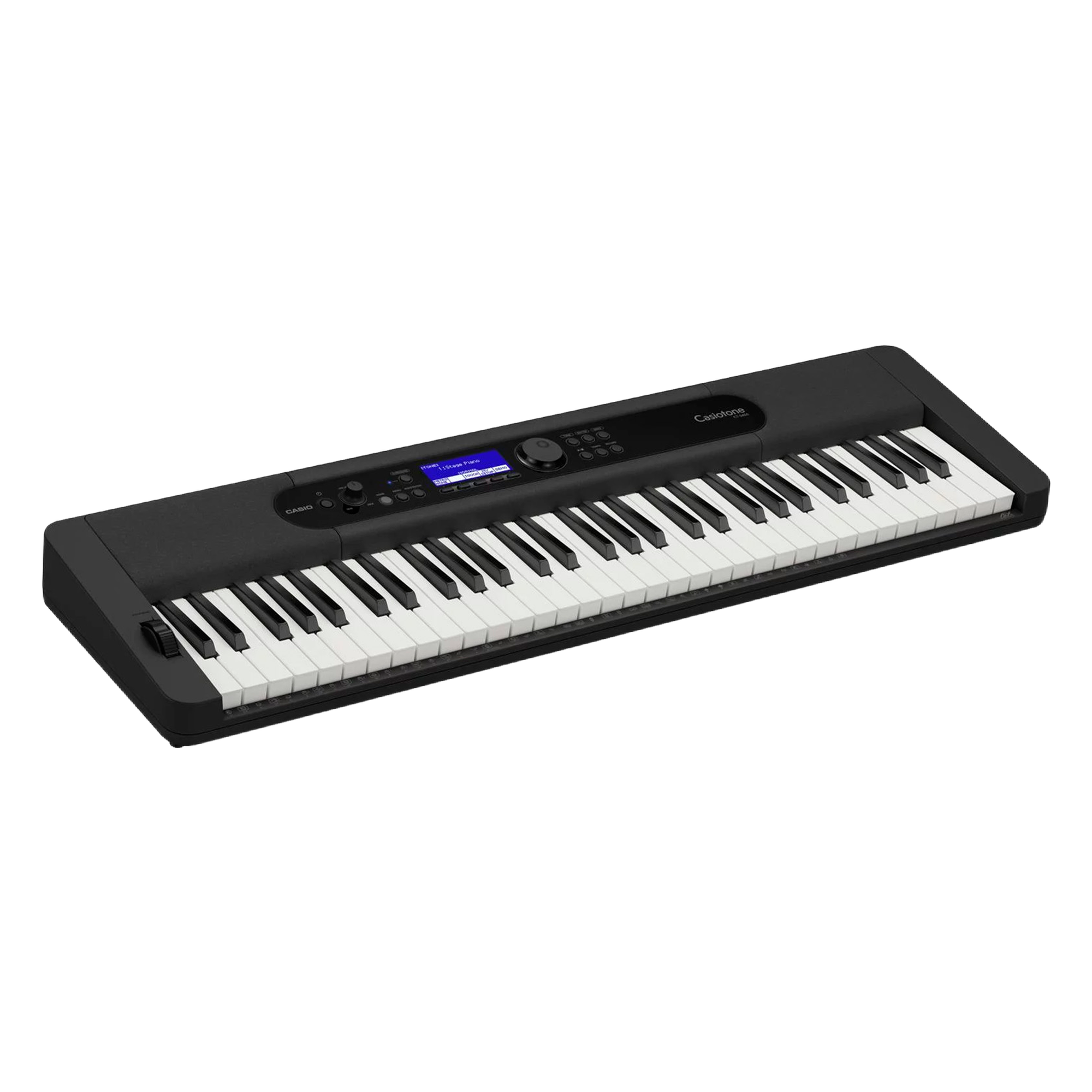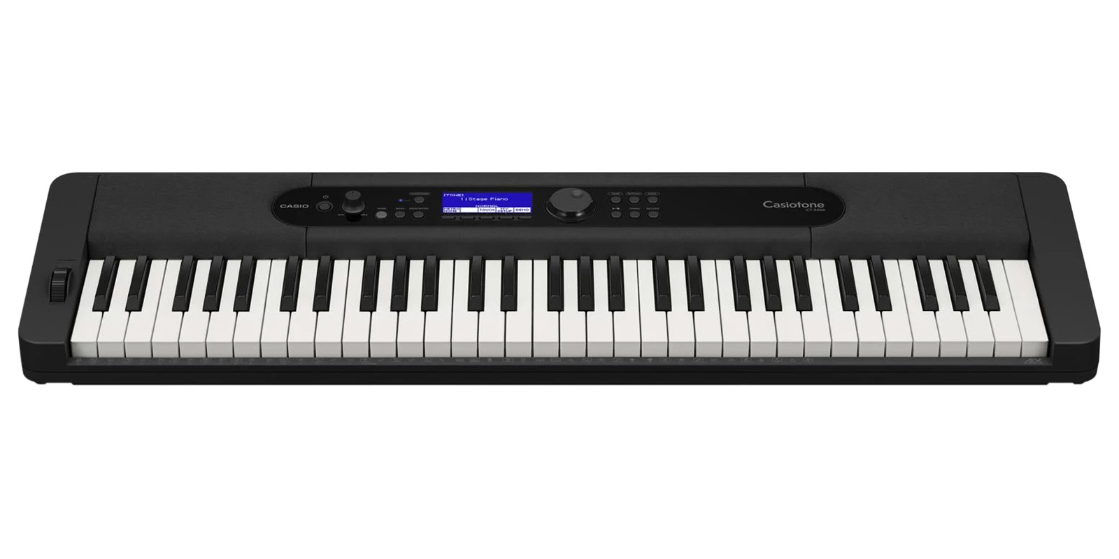 Ya sea que hagas música sólo para ti o para alegrar a los demás, tu creatividad florecerá con el CT-S400. Si estás descubriendo una nueva pasión en la música o reavivando un viejo recuerdo, este teclado es el instrumento perfecto para todos. El CT-S400 integra buena potencia en un formato compacto, de tonos versátiles, rico sonido y posibilidades ilimitadas de diversión. Disfruta de la sensación de hacer música en cualquier lugar y con cualquier persona. El CT-S400 le aportará deleite e inspiración sin límites a tu mundo. Conéctate profundamente con la verdadera esencia del sonido. Los tonos vívidos y claros de piano son sólo la punta del iceberg. Disfruta de los tonos vívidos de la fuente de sonidos AiX y deléitate con las voces expresivas y de alta resolución que brillan a través del nuevo y exclusivo sistema acústico de Casio: todo para asegurarte un sonido fresco y potente que mejorará tu creatividad. ¿Quién hubiera pensado que un diseño tan compacto produciría este nivel de tono encantador y sonido real? Experimenta la música a tu manera en la comodidad de tu habitación. El CT-S400 es más que un teclado normal. Es tu compañero de aprendizaje, exploración y creatividad. Disfruta de la flexibilidad de cambiar tu forma de tocar a medida que mejoras tu destreza. Este teclado evoluciona con tu estilo. Practica y toca con tu música favorita o acompañamientos automáticos. Conéctate con una aplicación o dispositivo externo. Tu experiencia sólo estará limitada por tu imaginación. Con opciones para todos, no importa el nivel en el que te encuentres: el CT-S400 te permitirá descubrir una nueva creatividad. Redefiniendo lo que hace a un instrumento “real”, la tecnología de la fuente sonora AiX del CT-S400 interpreta la complejidad expresiva de los instrumentos musicales. Con una gama amplia de sonidos para elegir, nunca tendrás que dejar de tocar. Pianos, cuerdas, metales, sintetizador, bajo y batería: 600 tonos para que no te limites a un sólo género y que el mundo de la música sea tuyo para explorarlo. A pesar del tamaño compacto del CT-S400, la tecnología Bass Reflex Horizontal mejora los graves, que, junto con los altavoces personalizados, posibilita sonidos potentes y vividos. Añade la función de sonido envolvente y experimenta la vibración y el poder de la música pura. Deja que la función Volume-Sync EQ tome el control a medida que ajusta automáticamente el balance entre graves y agudos manteniendo un sonido vibrante y contundente, incluso a bajo volumen. Siente el placer del sonido y experimenta la riqueza del audio desde la comodidad de tu hogar. Con sólo los botones esenciales en el panel operativo del CT-S400 y una rueda de dial para seleccionar los tonos y cambiar los ajustes a través de la pantalla LCD, la disposición amigable del teclado, garantiza una experiencia intuitiva. Maximiza la inspiración con MY SETUP (Mi configuración). Programa una amplia gama de funciones que se adapten a tus necesidades. Asigna tus configuraciones favoritas a cada uno de los 5 botones ubicados debajo de la pantalla LCD, y accede fácilmente a ellos con un solo toque cuando estés listo. Personaliza el CT-S400 y haz que tu música hable de ti. El CT-S400 te ofrece toda la banda. Con 200 patrones rítmicos de una amplia gama de géneros, puedes tocar con cualquiera de tus melodías favoritas. Reproduce la emoción de tocar junto a otros músicos utilizando la función de acompañamiento automático, con cualquiera de las 160 canciones integradas. Personaliza los ajustes en tu interpretación cambiando el tempo y seleccionando las partes de la mano izquierda o derecha para tocar junto a tus canciones y practicar individualmente. Mantén el disfrute: se trata de practicar sin estrés y a tu propio ritmo. Potente y compacto. El diseño delgado del CT-S400 hace que sea fácil de mover y usar en cualquier lugar. Haz música en cualquier parte, con o sin stand o mesa. Ideal, en espacios reducidos, ya que cuenta con los pines para usar una correa. El CT-S400 estará siempre a tu lado y listo para tocar. El CT-S400 ofrece innumerables formas de disfrutar de la emoción de la música. Escucha la música de tu smartphone o tablet a través de los potentes altavoces del teclado utilizando el adaptador inalámbrico bluetooth de audio y MIDI WU-BT10*. Accede a la partitura de cada canción integrada con la aplicación Chordana Play. Personaliza las melodías en Audio Mode (Modo de audio) cambiando la tonalidad y el tempo, o utilizando los botones “Cancel melody” (Cancelar melodía) y “Cancel accompaniment” (Cancelar acompañamiento) para convertir tu música favorita en una pista de acompañamiento, con la cual tocar. Utiliza la capacidad MIDI en el Lesson Mode (Modo lección) para mostrar el piano roll y hacer que la práctica sea divertida. Conéctate a otras aplicaciones compatibles con MIDI en dispositivos externos para personalizar tus lecciones: libérate de las viejas nociones de práctica siendo creativo y divirtiéndote.