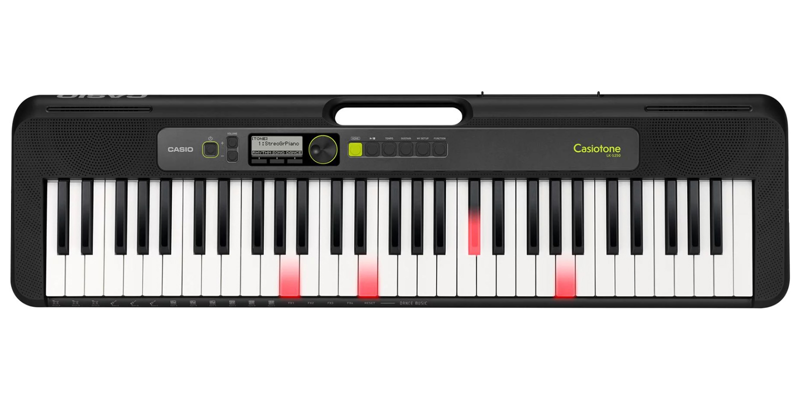 Con el teclado LK-S250, puedes disfrutar de la música en cualquier momento y lugar. Su tamaño compacto de 930 x 256 x 73 mm es un 30% más pequeño en volumen que los modelos LK-265 y LK-266, y su batería alcalina cuenta con aproximadamente 16 horas de duración. Llevarlo es muy sencillo, gracias a un mango en la parte superior del teclado y un peso de solo 3.3 kg. El diseño incorpora bordes y esquinas redondeados, lo cual permite transportarlo con seguridad. El período de funcionamiento continuo puede ser más corto según el tipo de batería y la manera en que toca música. Presenta una interfaz simple e intuitiva que ofrece un diseño organizado con menos botones mediante una pantalla LCD de puntos completos y un selector. También cuenta con un botón de inicio que permite a los usuarios volver a la pantalla original en cualquier momento, lo cual convierte a este producto en un teclado multifunción superior con una facilidad de uso mejorada. El uso de altavoces ovalados de 13 x 6 cm con imanes reforzados ofrece un sonido sorprendentemente genial para un instrumento tan compacto. Una función adicional que optimiza el ecualizador en conjunto con el volumen proporciona un sonido equilibrado desde los tonos graves hasta los tonos altos, incluso a un volumen bajo. Incluye un modo que permite a los usuarios juntar frases de batería, bajo y sintetizador para disfrutar fácilmente de la música bailable, además de 12 tipos de voces de música bailable que encajan muy bien con esta música. Solo presiona junto con el ritmo para agregar detalles a la reproducción común y disfruta de la música bailable. Ayuda a mejorar tu técnica para tocar con el sistema de iluminación de teclas, el cual te guía iluminando la siguiente tecla que debes tocar y la función Lección paso a paso, que te ayuda a practicar en un formato de cuatro pasos. Las teclas tienen forma de caja, similar a las de un piano. La sensibilidad al tacto proporciona cambios de volumen y tono como los de un piano, dependiendo de la fuerza que se utilice para tocar las teclas. El LK-S250 incluye un conector USB a host micro B que te permite disfrutar fácilmente de la música, junto con tu dispositivo inteligente o computadora. Muestra 50 canciones demo en la aplicación o archivos MIDI descargados en el rollo de piano Chordana Play o en la pantalla de partitura musical para reproducir tus canciones favoritas en cualquier momento y lugar. Reproduce música sin leer una partitura musical presionando las teclas al ritmo con las barras a medida que bajan desde la parte superior de la pantalla. Registra tu puntuación en la función de puntaje de la aplicación para que la práctica sea algo divertido y observes cómo mejoras tu habilidad para tocar.