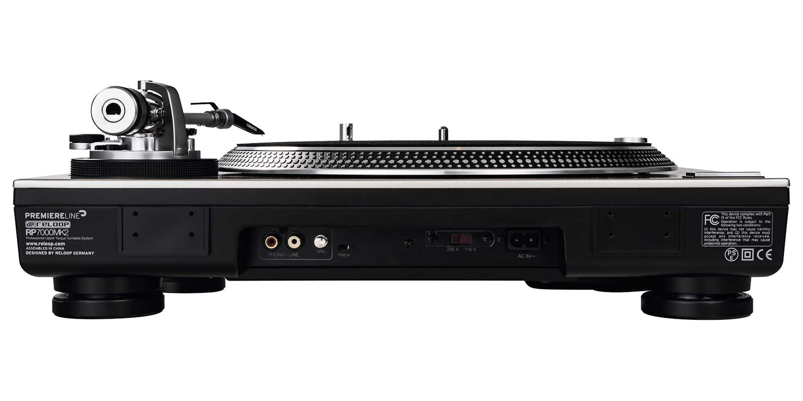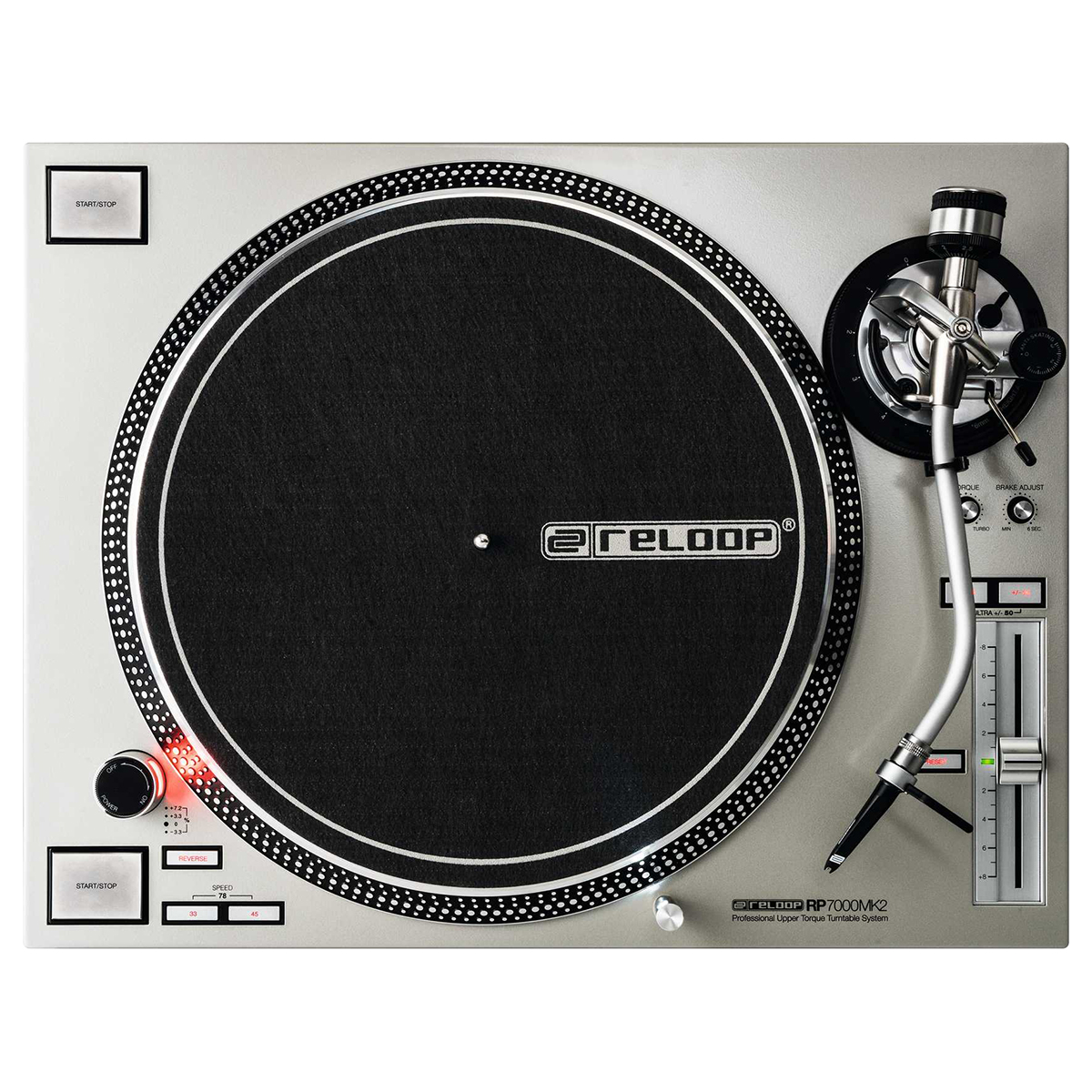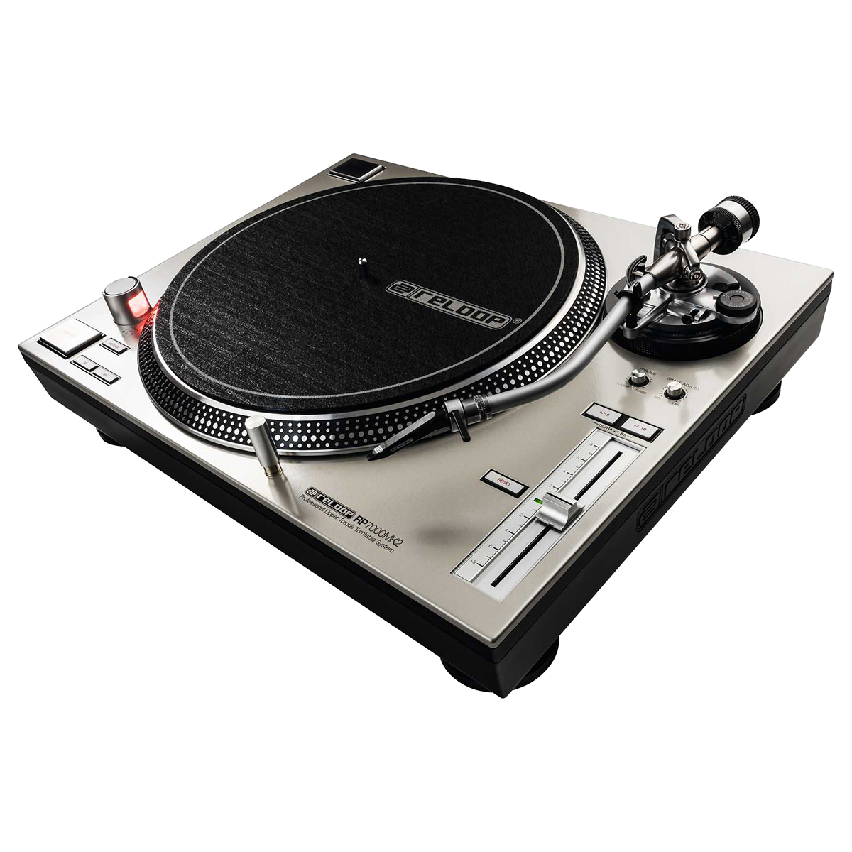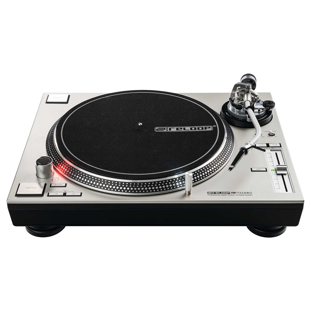 Masa efectiva del brazo de tono: 12.8 g (incluyendo Reloop Headshell ~10 g).
