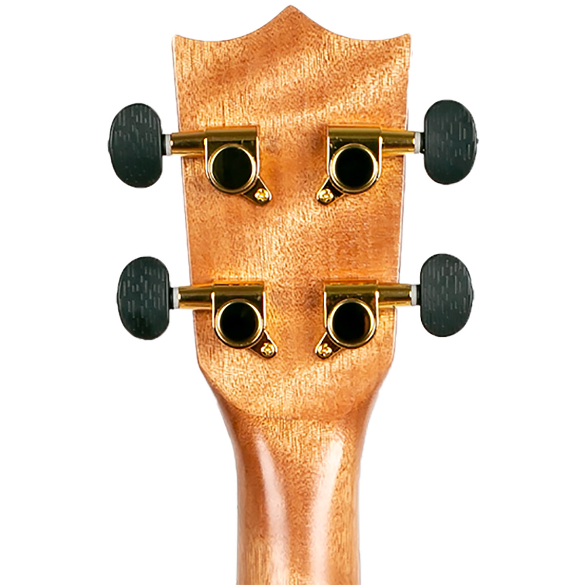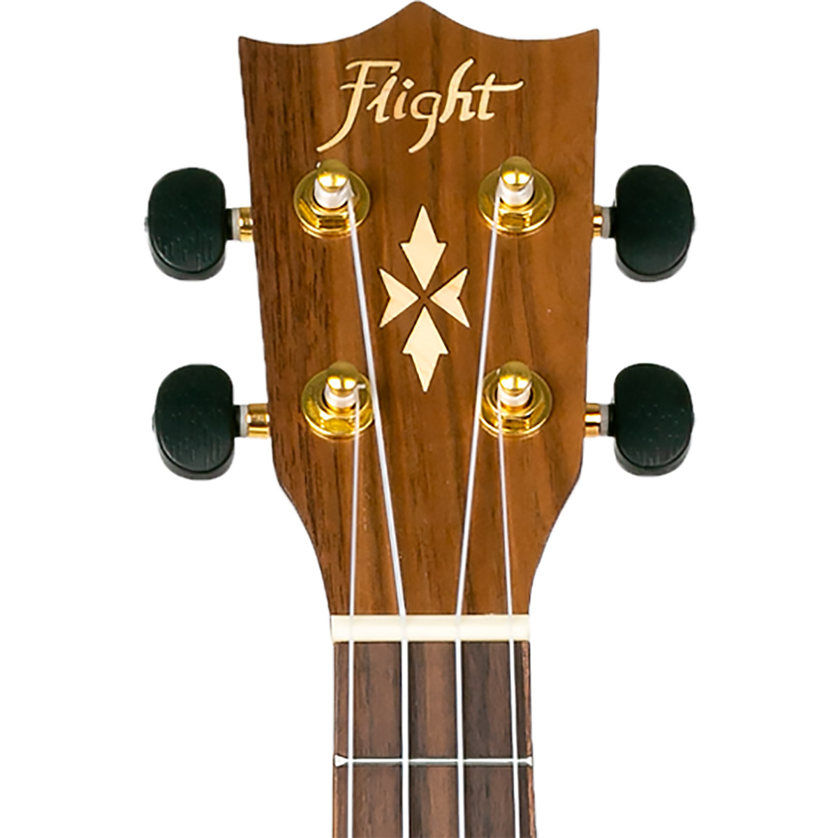 El diseño del cabezal es una parte integral de nuestra identidad. Todos los ukeleles Flight cuentan con un cabezal diseñado cuidadosamente equipado con afinadores engranados que siempre te mantendrán afinado.