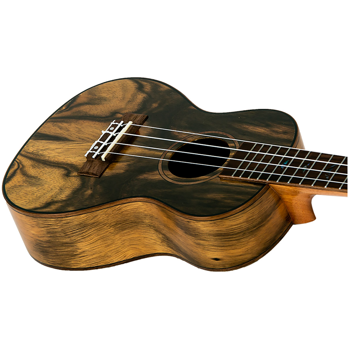 Este nuevo ukelele hace que sea aún más difícil elegir entre nuestras bellezas exóticas. Y hay una buena razón por la cual eso sucede: su fresca tonalidad verdosa y sus exclusivos diseños de madera son demasiado difíciles de resistir, como los ojos esmeralda de una exótica diosa extranjera. ¿Serás capaz de no sucumbir a su encanto?
