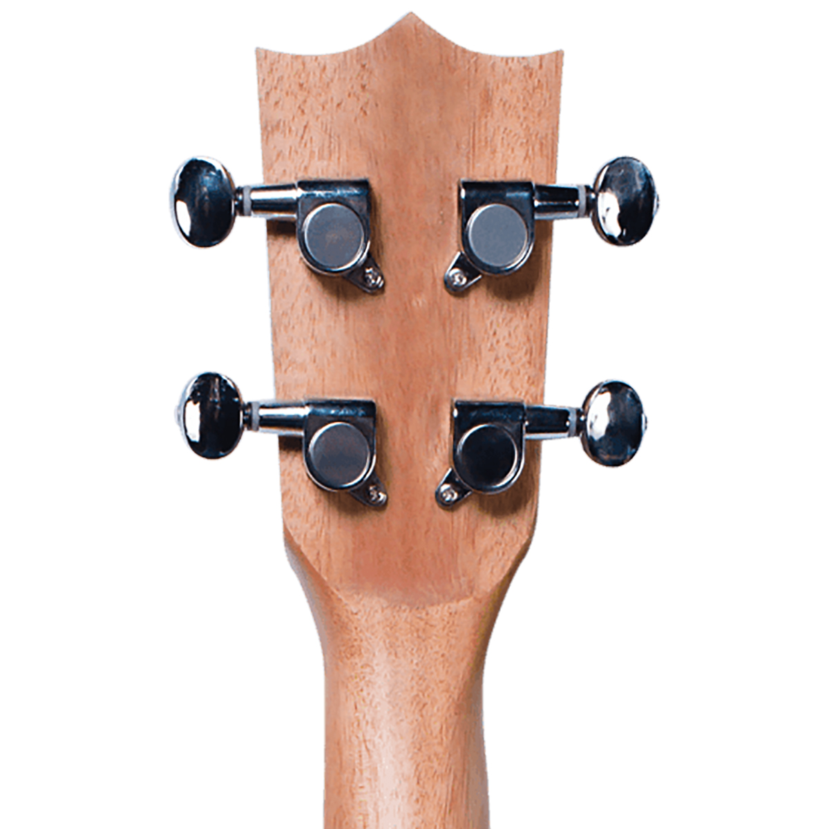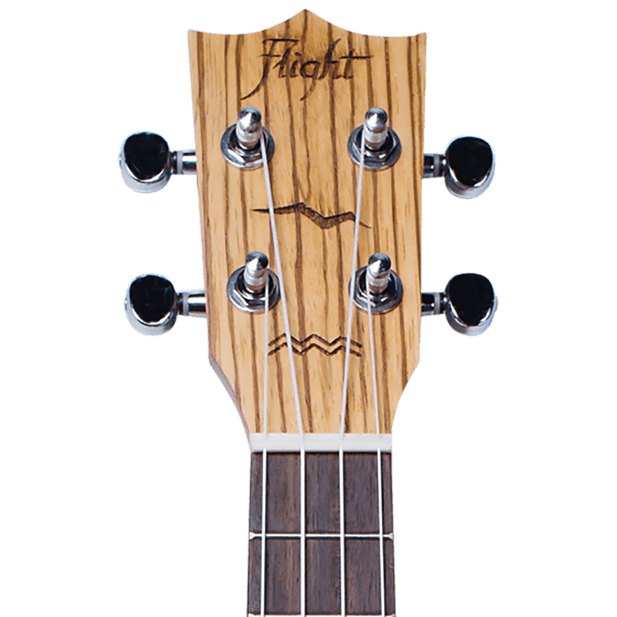 Hermoso y fácil de afinar. El diseño del cabezal es una parte integral de nuestra identidad. Todos los Ukuleles Flight cuentan con un cabezal diseñado cuidadosamente equipado con afinadores engranados que siempre te mantendrán afinado.