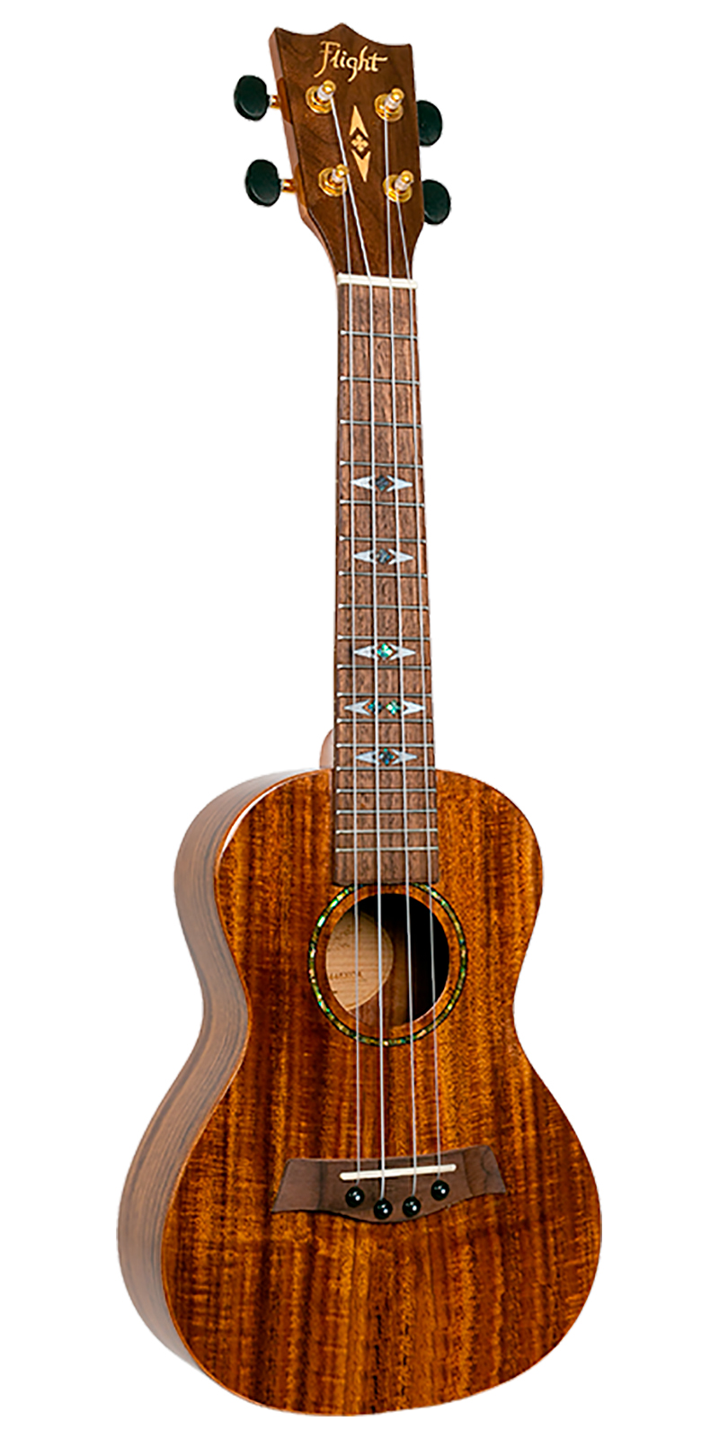 El DUC455 de Flight está hecho con acacia laminada. La acacia pertenece a la misma familia que la koa hawaiana y es una opción popular como madera tonal de ukeleles. Si estás buscando el verdadero sonido de la isla a un precio asequible, este es el ukelele para ti. Este ukelele tiene un acabado brillante espectacular, lo que hace que se vea tan bien como suena.