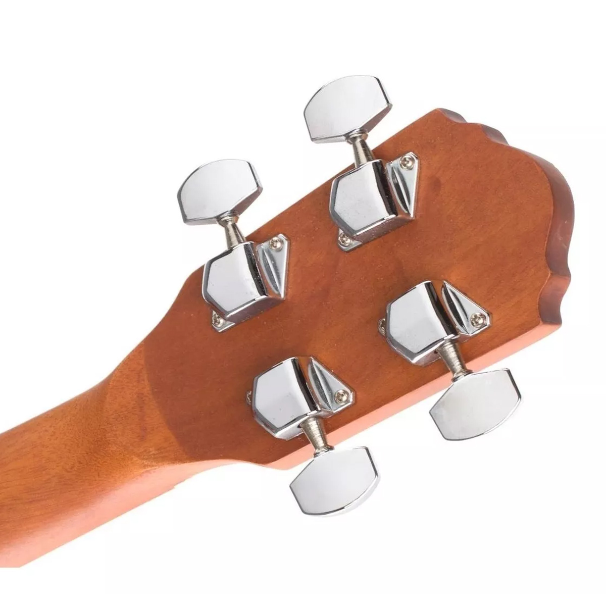 Ukelele acústico tamaño concierto, tapa, aros y fondo de caoba, color natural, terminado satinado, brazo de caoba, incrustaciones de puntos, hardware cromado, maquinaria die-cast.